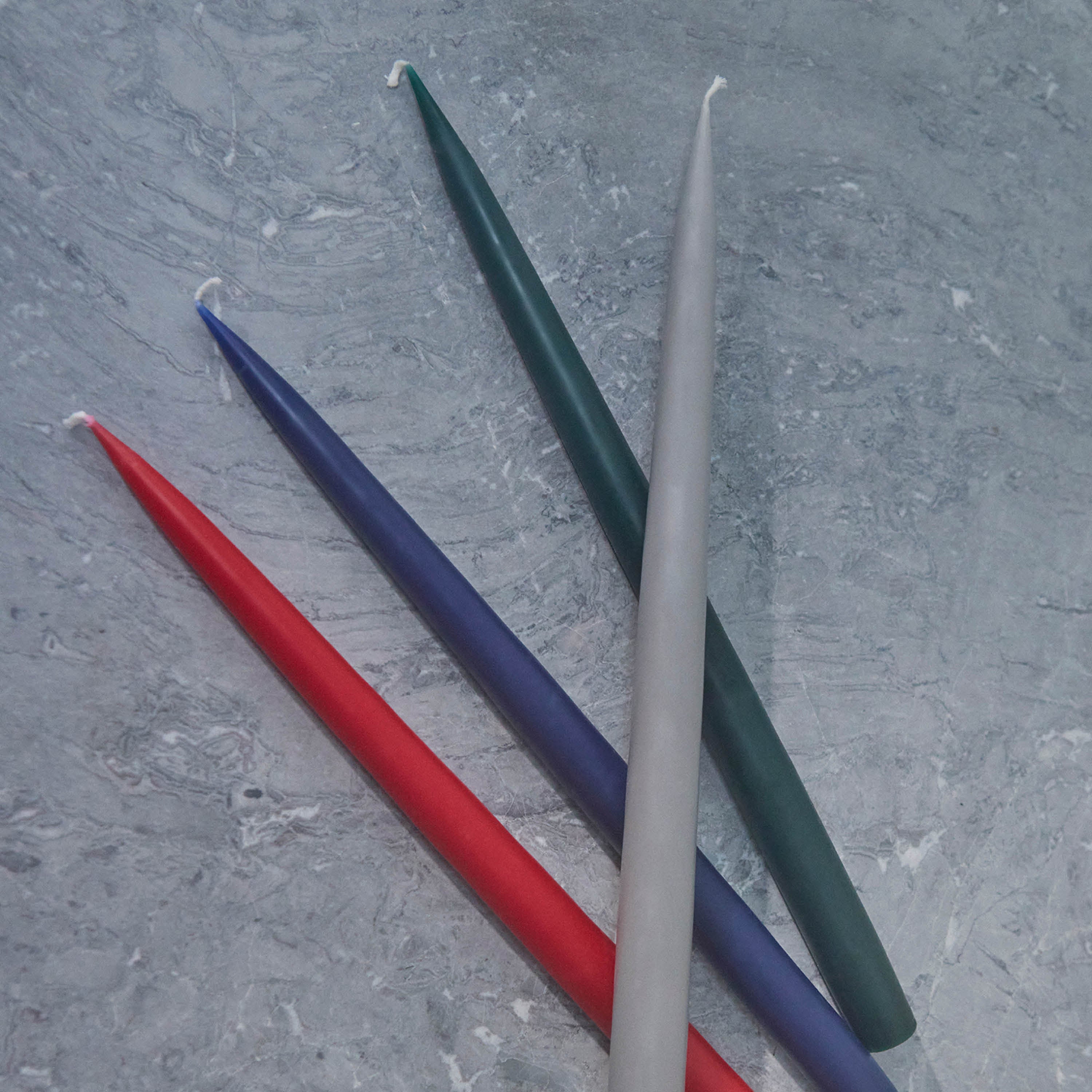 Geef de finishing touch aan je gedekte tafel met lange, handgedompelde kaarsen in prachtige kleuren. De kaarsen zijn effen van kleur en gemaakt van 100% volledig geraffineerde paraffine van de hoogste kwaliteit. Elke kaars is 35 cm lang en heeft een brandtijd van 15 uur. Je kunt kiezen uit 8 kleuren die passen bij enkele van onze populairste ontwerpen.
