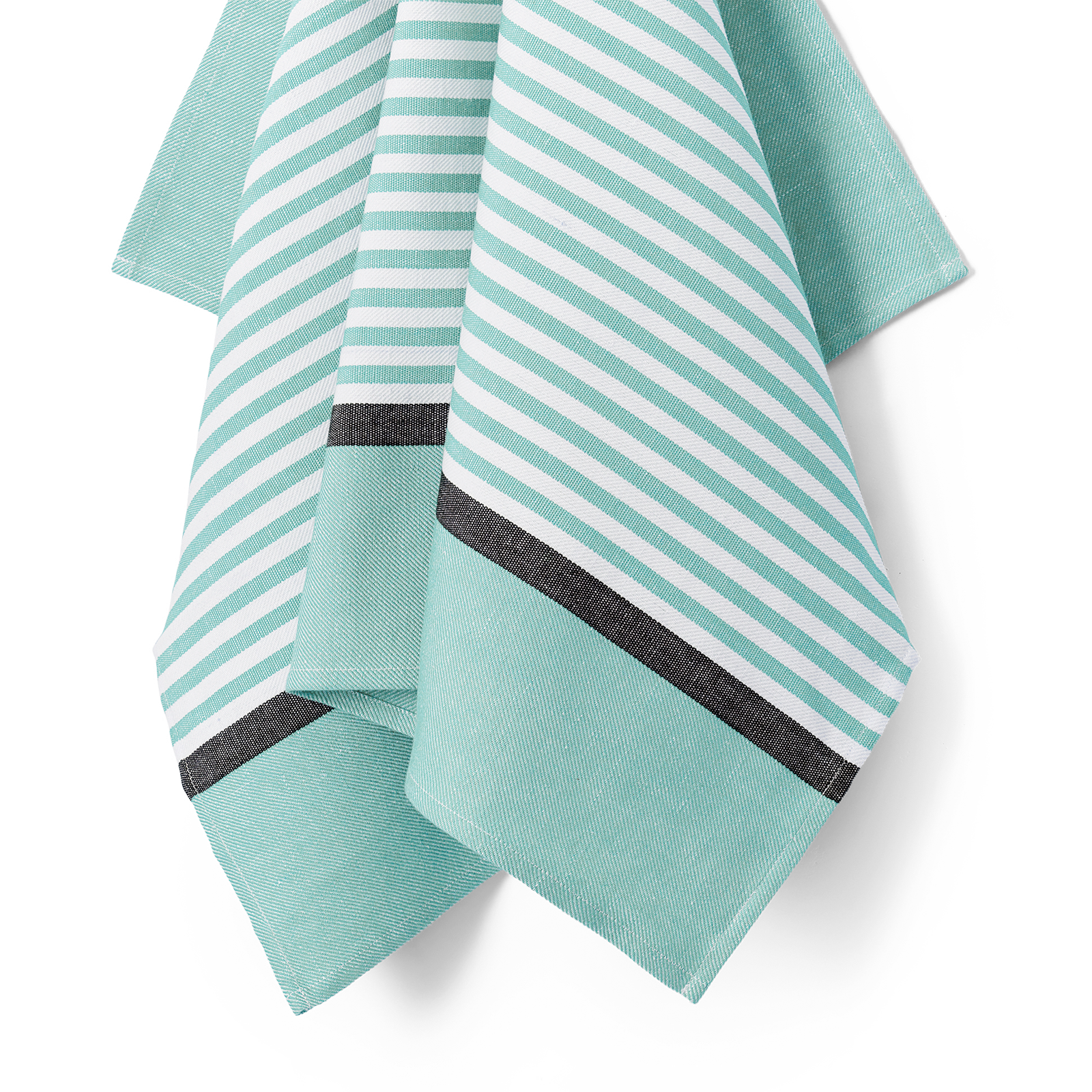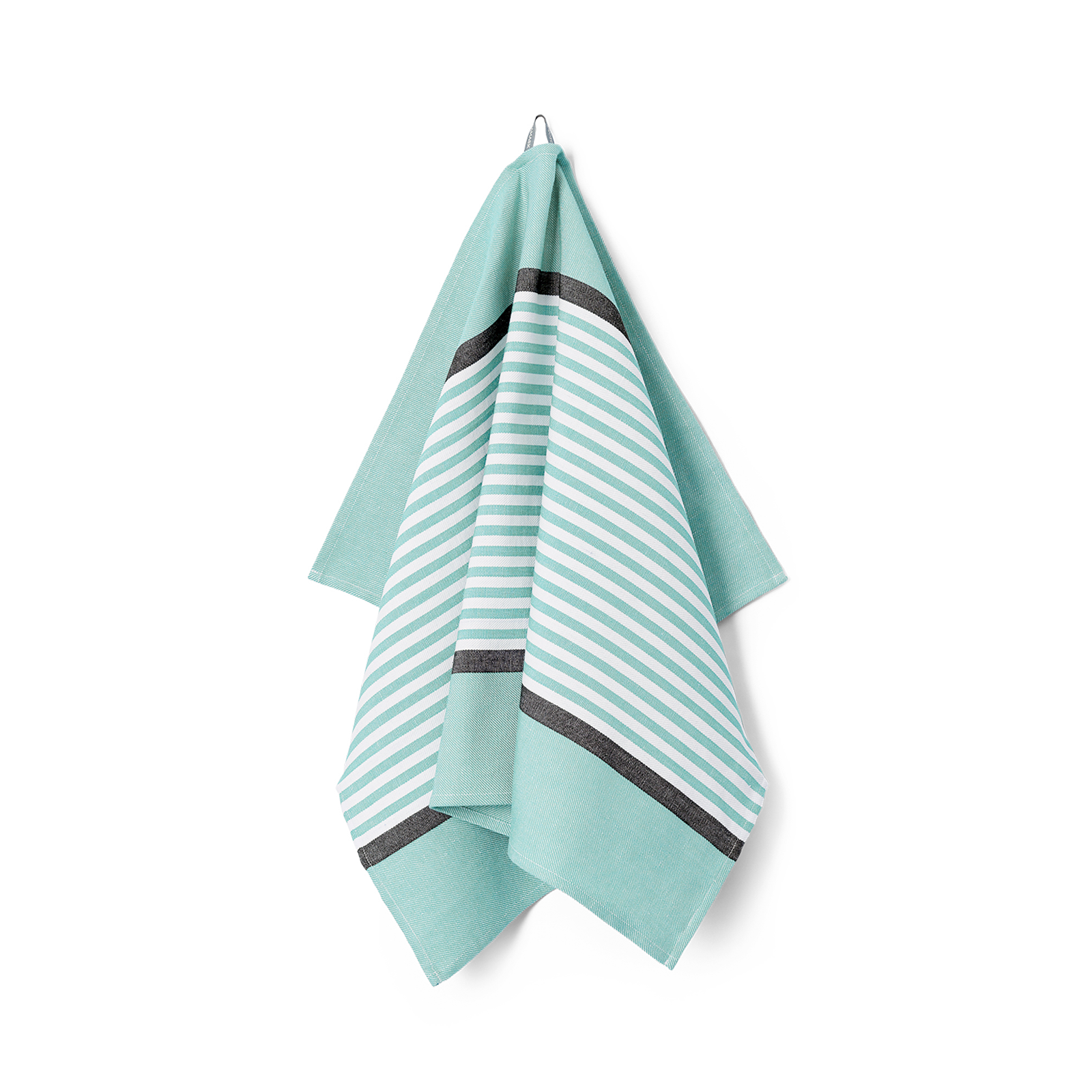 De gestreepte Abild theedoek is een klassieker in de Georg Jensen Damast collectie. Ontworpen door wever en textielingenieur Bent Georg Jensen, is Abild een elegante combinatie van kwaliteit, functie en design. De theedoek is geweven in een combinatie van 50% linnen en 50% katoen, waardoor hij optimale droogeigenschappen heeft. De heldere blauwgroene kleur, Deep Glass, is geïnspireerd op de kleur van ruw glas.