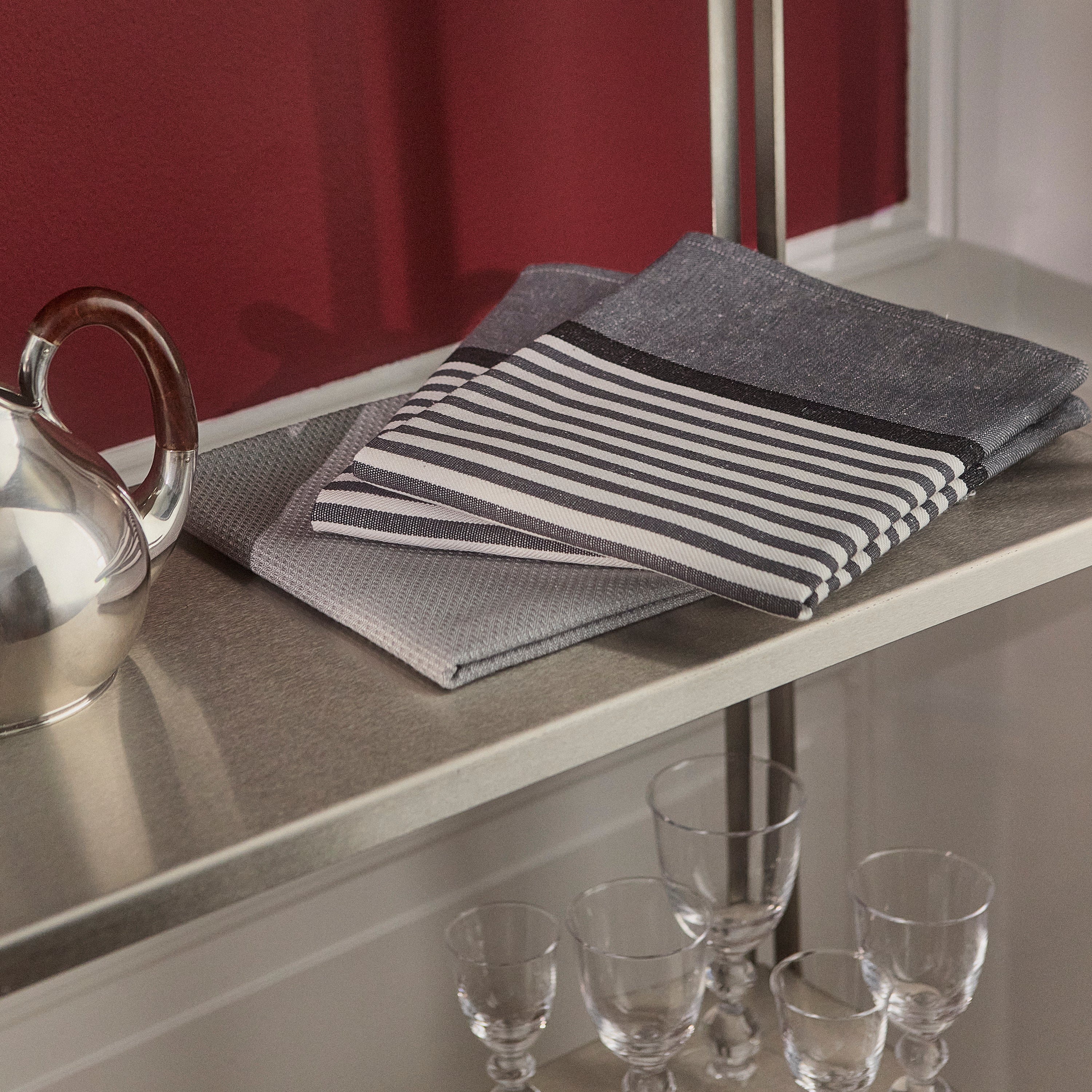 Een klassieke theedoek met harmonieuze strepen als belangrijkste designelement. Geweven in een sterke combinatie van linnen en katoen voor optimale droogeigenschappen.