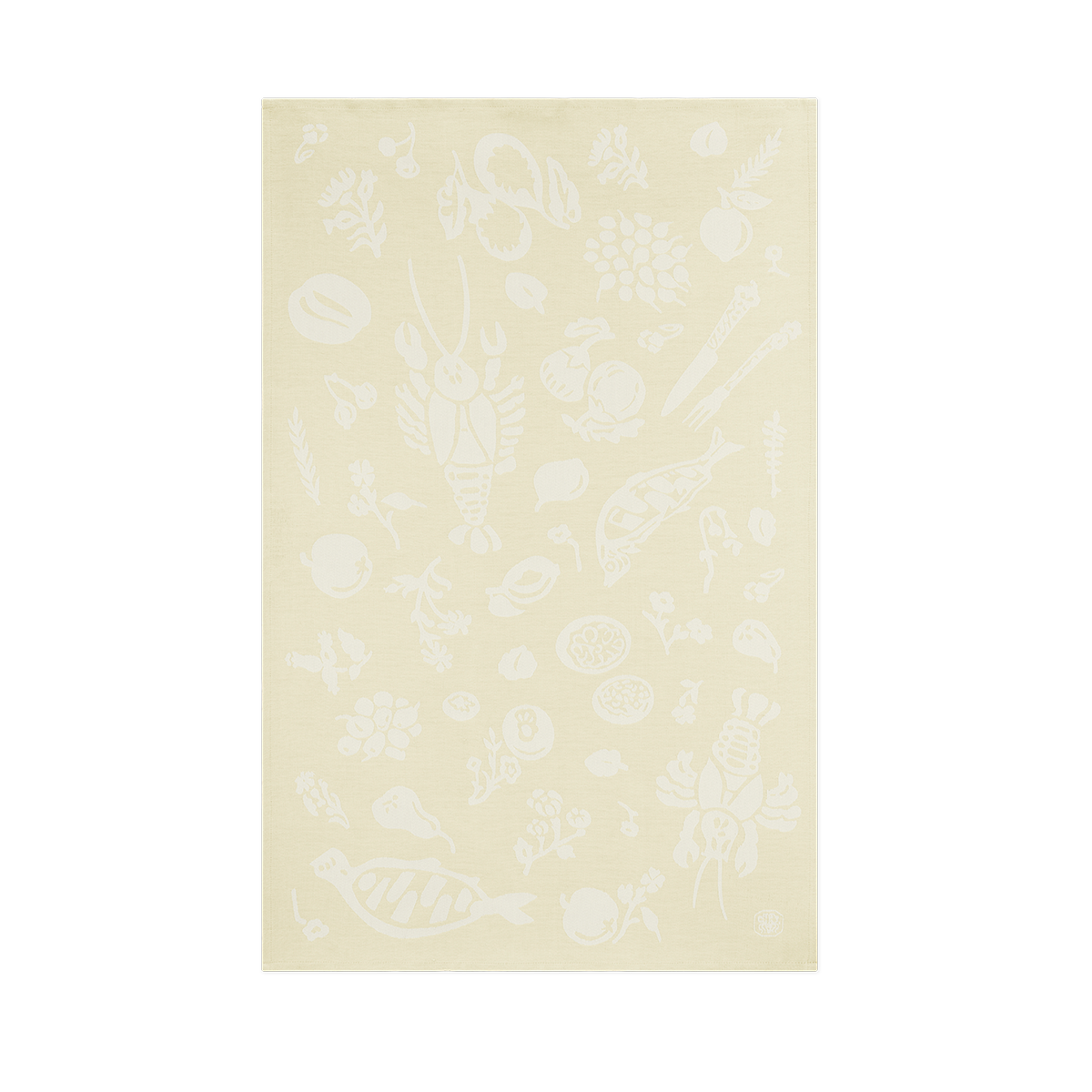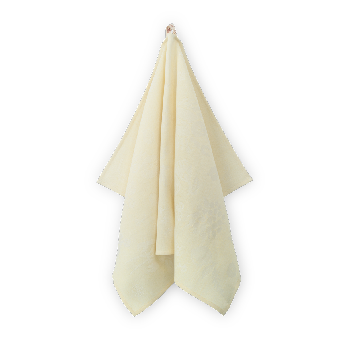 De Banquet theedoek is een eenvoudige en elegante theedoek met ingeweven motieven uit de Renaissance maaltijd. De theedoek heeft een hoge droogcapaciteit, is damast geweven van 50% katoen en 50% linnen en is verkrijgbaar in kleuren waaronder Pale Yellow.