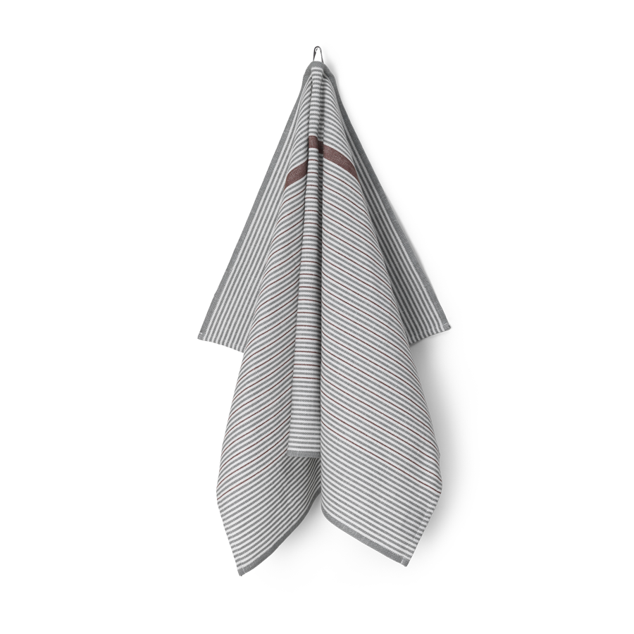 Comet is een tijdloze gestreepte theedoek ontworpen in 1979 door Bent Georg Jensen - hier in de lichtgroene kleurencombinatie Mineral Green. De theedoek is geweven in een mix van katoen en linnen, waardoor hij ideaal is om te drogen.