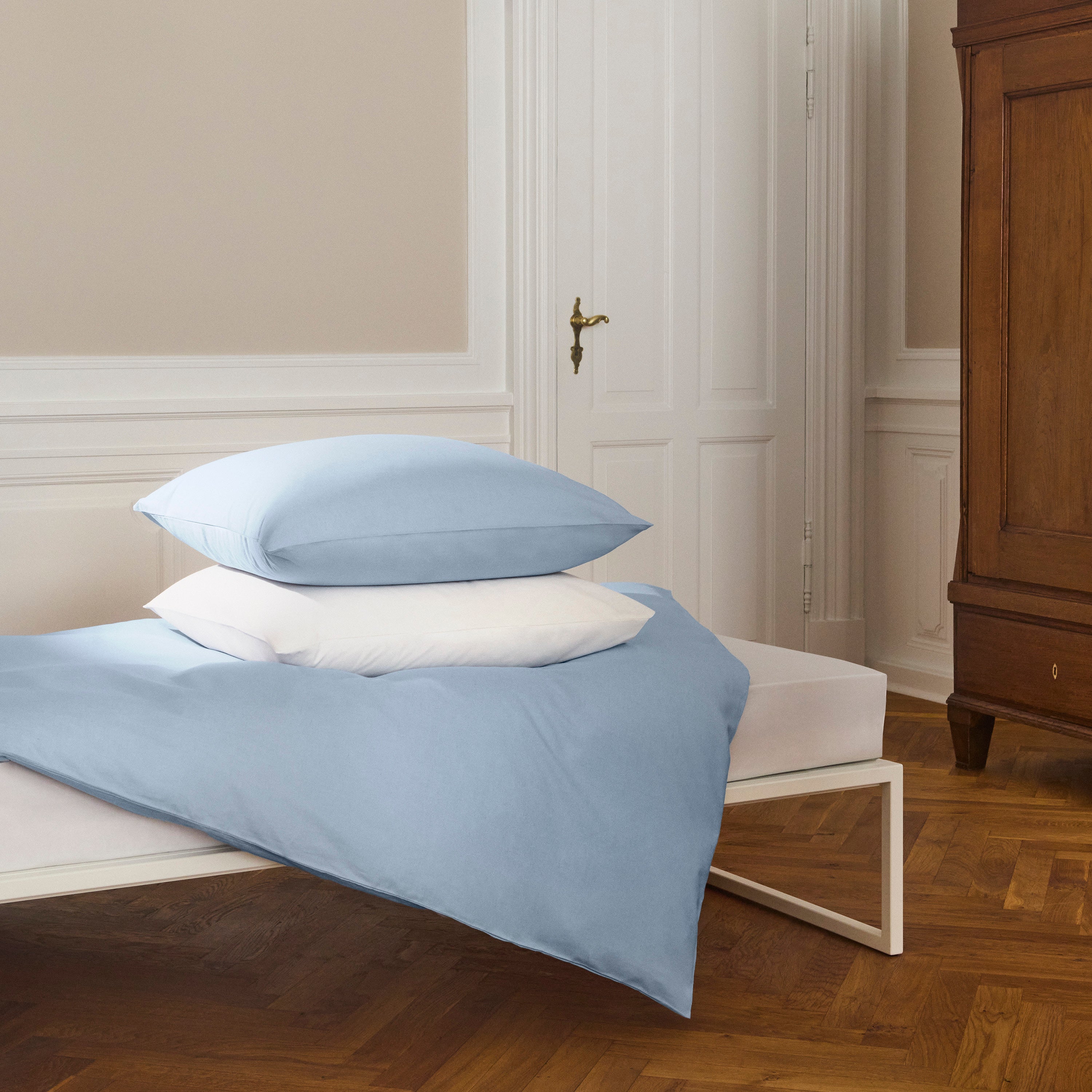 Het Even-beddengoed is linnenbinding geweven van linnen en katoen om de bijzondere eigenschappen van beide materialen te combineren. De natuurlijke textuur van linnen gecombineerd met de zachtheid en vormvastheid van katoen. Samen geeft dit een mooi, mat en zacht oppervlak – en ademend en duurzaam beddengoed. De kleur Blue Haze is een lichte, vergrijsde tint blauw.