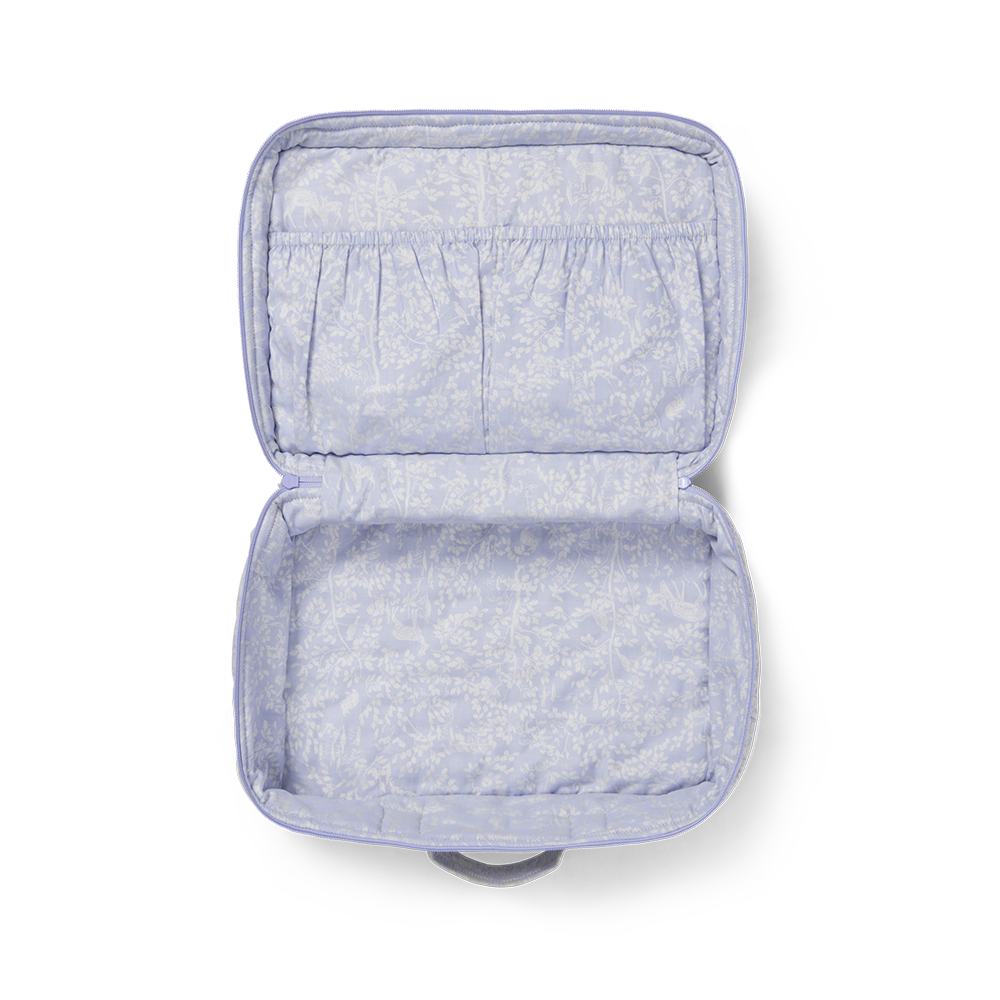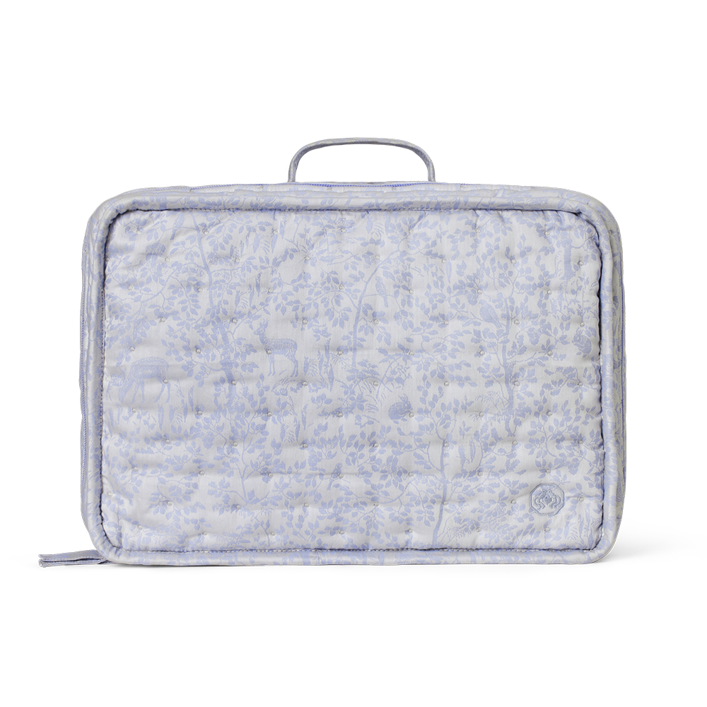 De koffer is verkrijgbaar in de kleur Clear Blue, maakt deel uit van de Forest kindercollectie en is gemaakt van biologisch katoen. De koffer heeft binnenvakken.