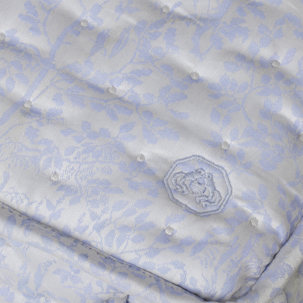 Alle producten hebben een klein geborduurd Georg Jensen Damask kinderlogo. Clear Blue is een lichte, enigszins stoffige blauwe kleur.