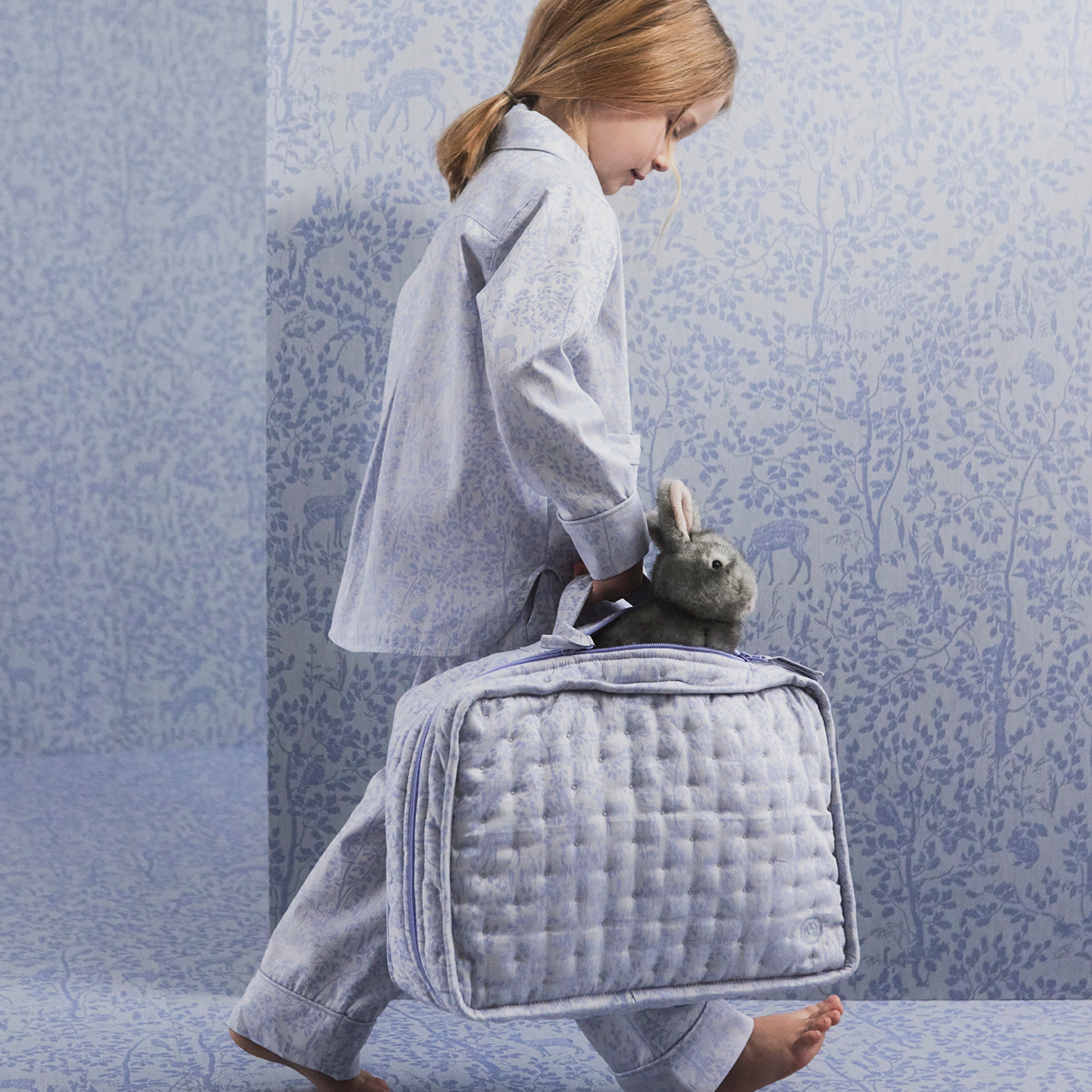 Het ontwerp van de Forest collectie is ontleend aan een 19e eeuws wandtapijt dat gevonden is in de historische archieven van Georg Jensen Damast. Naast de kleine blauwe koffer bevat de collectie ook een bedset, een gewatteerde deken en een pyjama in de twee kleuren Clear Blue en Misty Yellow.