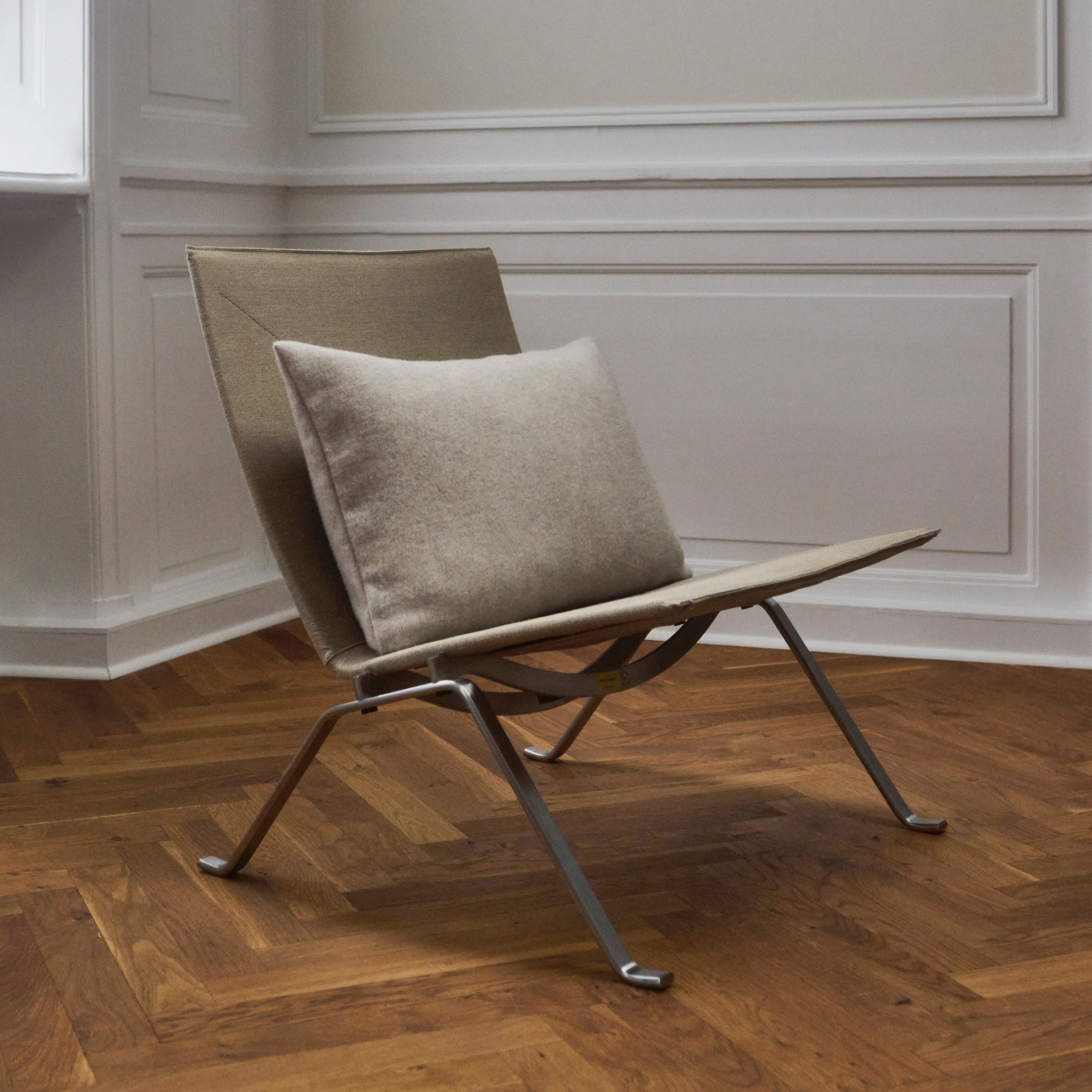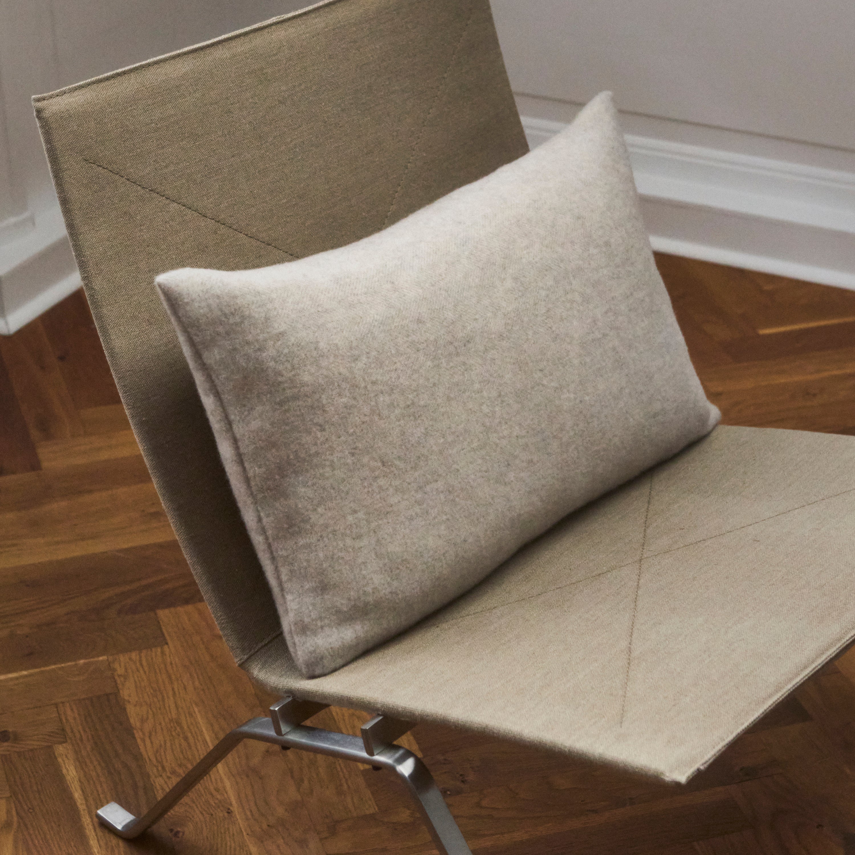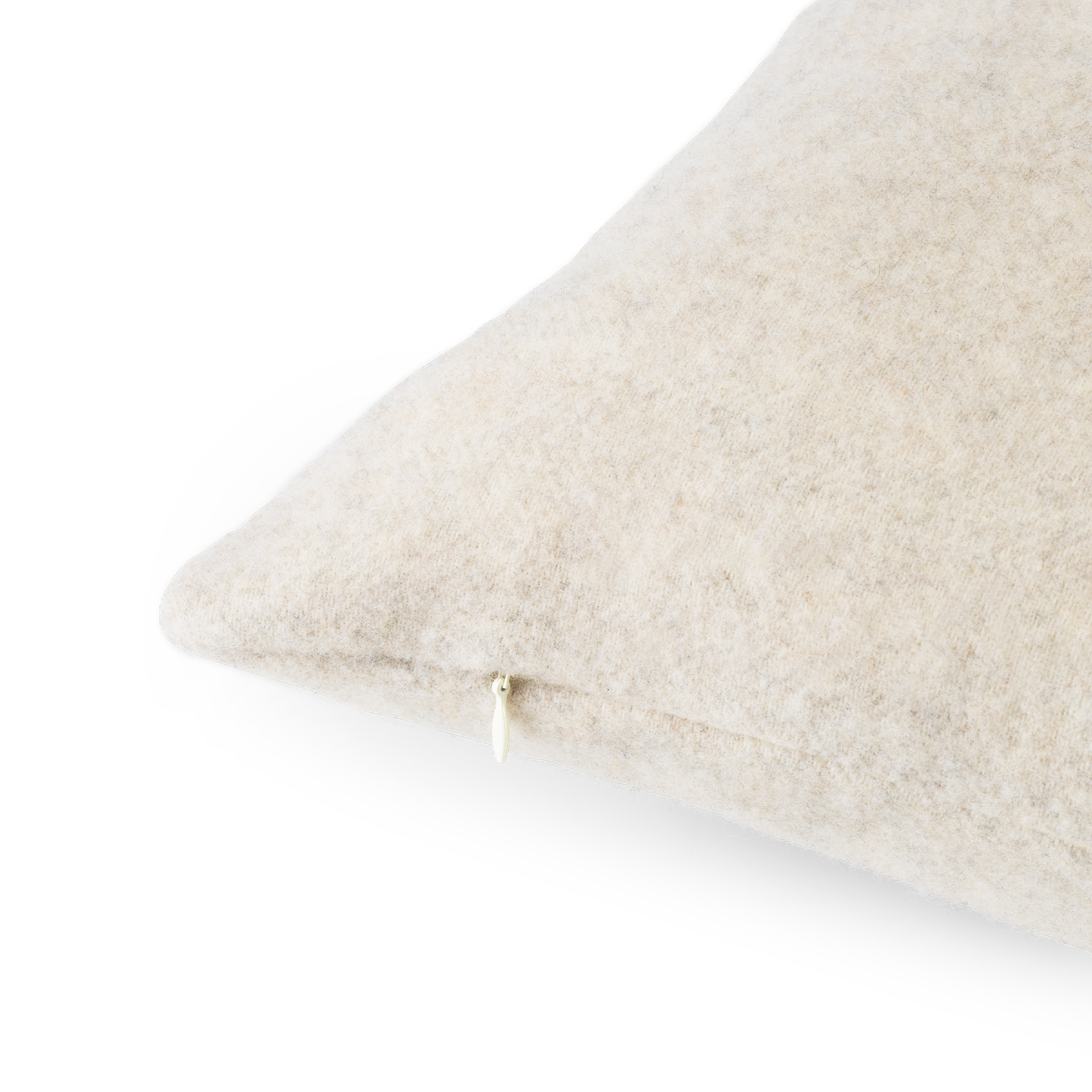 Elegante kussen van merinowol en kasjmier. Het Drift-kussen in de kleur Soft Sand is geweven in een verfijnd visgraatpatroon van garen in zandtinten, wat het een mooi en natuurlijk uiterlijk geeft. Het Drift-kussen is gemaakt van 90% merinowol en 10% kasjmier, waardoor het de warmte goed vasthoudt en perfect is om lekker mee te ontspannen.