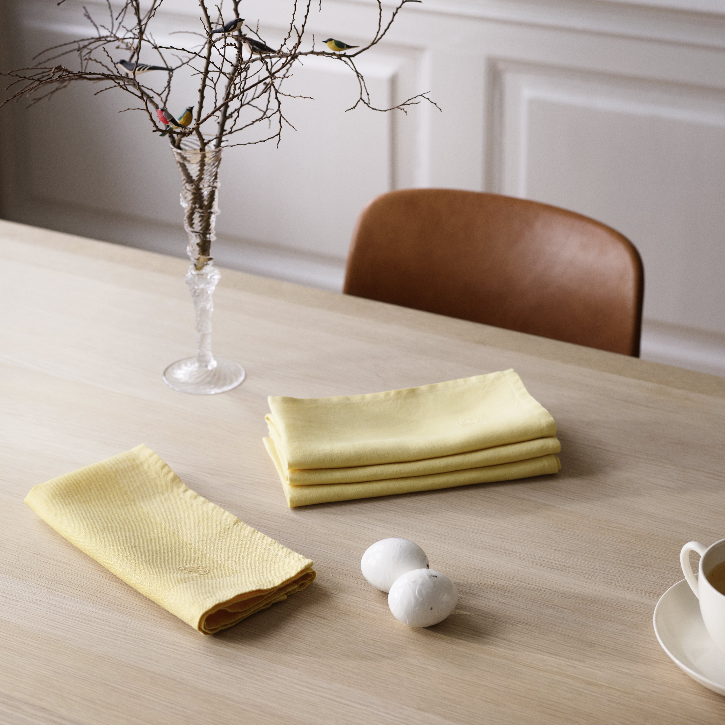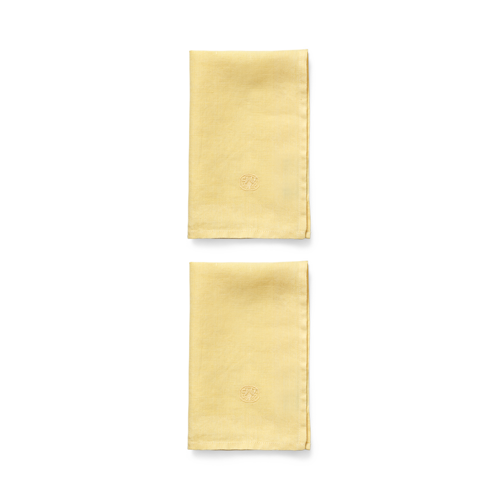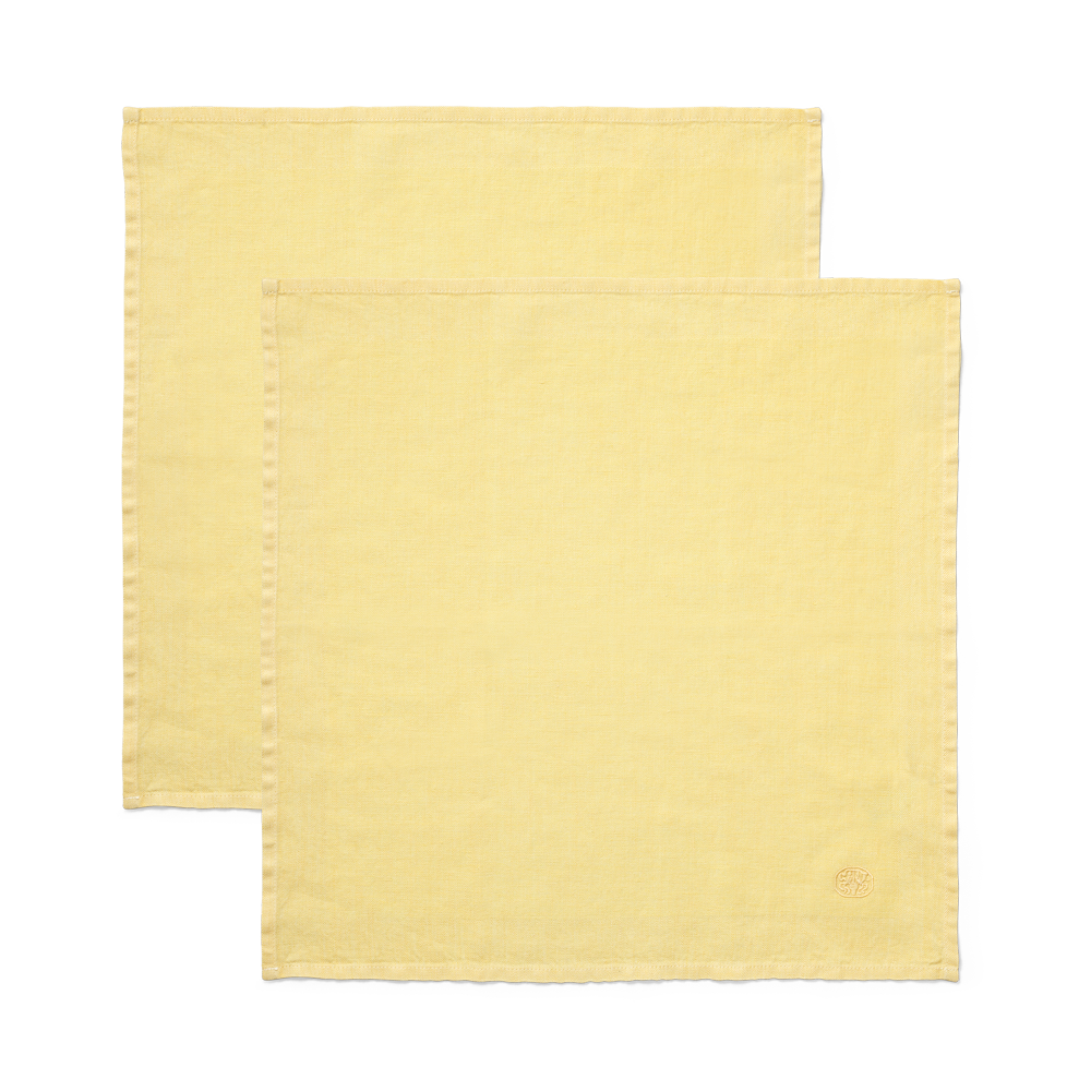 Met zijn eenvoudige ontwerp en zachtgele kleur is de servet een verfijnde aanvulling op de gedekte tafel. Bijzonder geschikt voor de klassieke tafel met een tafelkleed, maar net zo fijn als sfeervolle aanvulling op een eenvoudige tafelsetting.