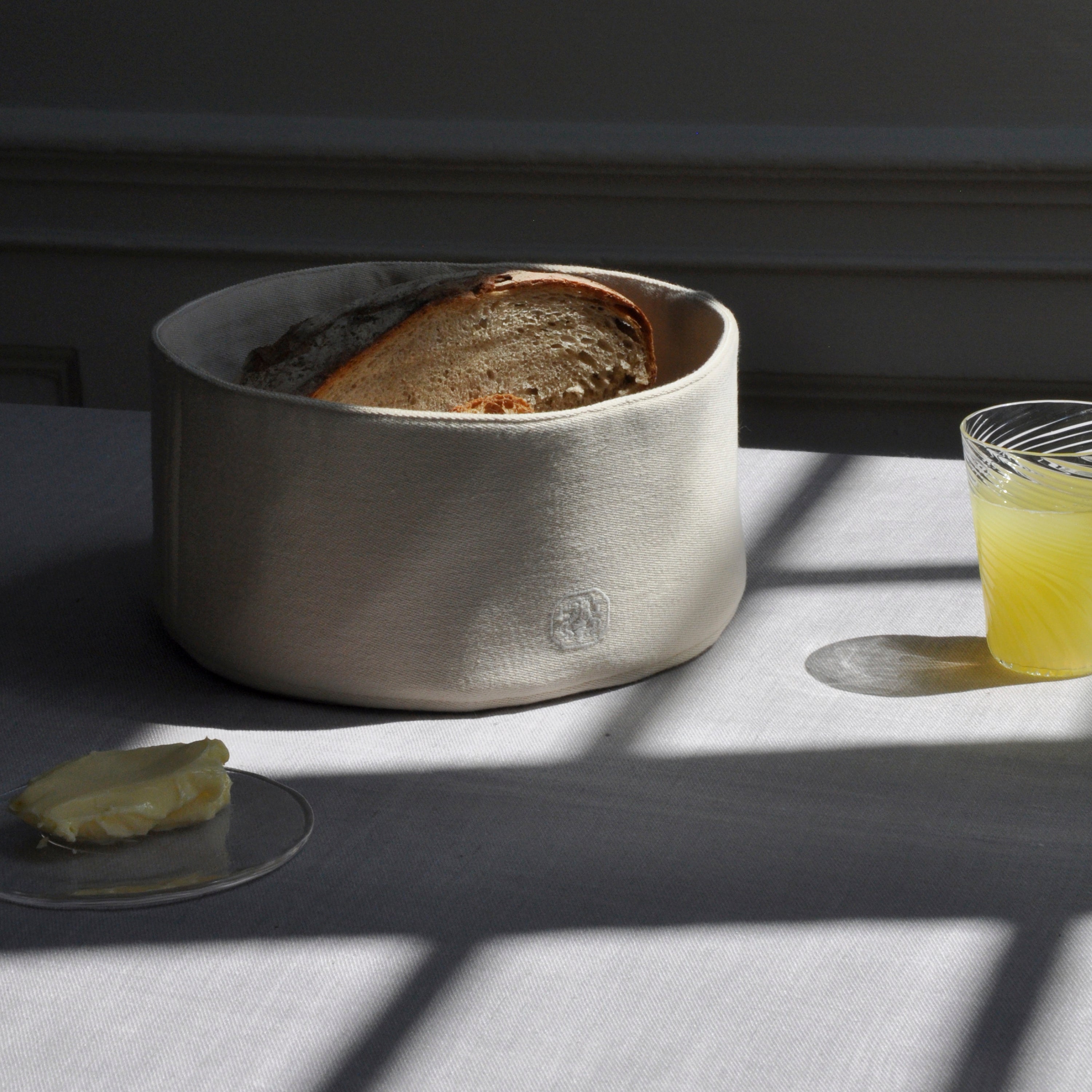 De Plain broodmand is genaaid van satijn geweven overtollige textiel uit de Georg Jensen Damast productie, wat logisch is in de wereld van vandaag. De stof is 100% katoen en het ontwerp is gemaakt om tientallen jaren mee te gaan. De broodmand maakt deel uit van een kleine collectie textielaccessoires voor de keuken, waar je ook koffiemutsen, theemutsen, pannenlappen en schorten vindt.