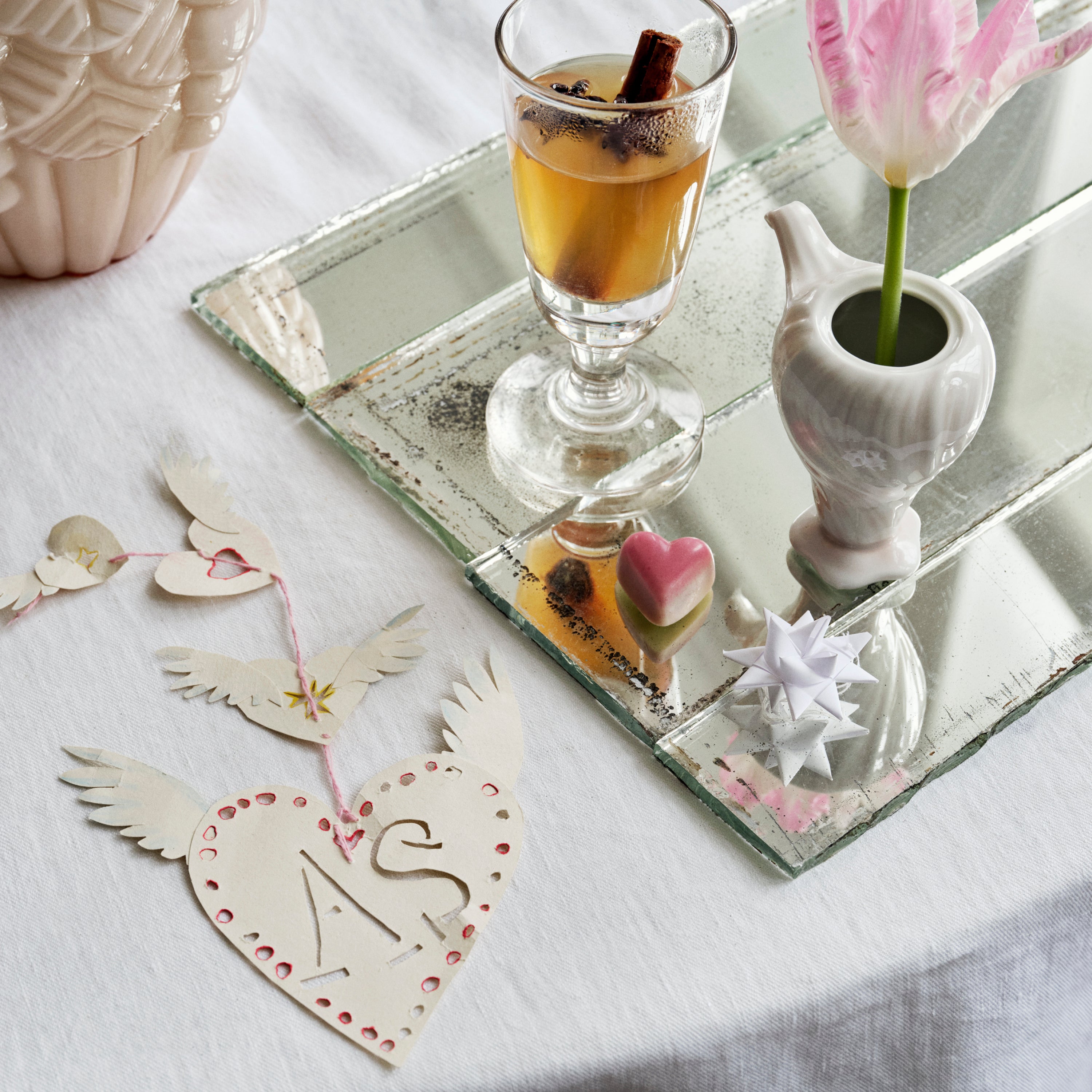 "Mix oud en nieuw. Denk niet dat dingen bij elkaar moeten passen - denk liever dat dingen niet bij elkaar hoeven te passen. Laat de kinderen mooie plaatskaartjes maken, of maak zelf een paar mooie papiersnedes. Breng wat geschiedenis in - bijvoorbeeld uit je ouderlijk huis. Een beetje humor is ook altijd belangrijk. Wees niet bang voor imperfectie en fouten. Onthoud dat dingen gebruikt moeten worden," zegt ze.