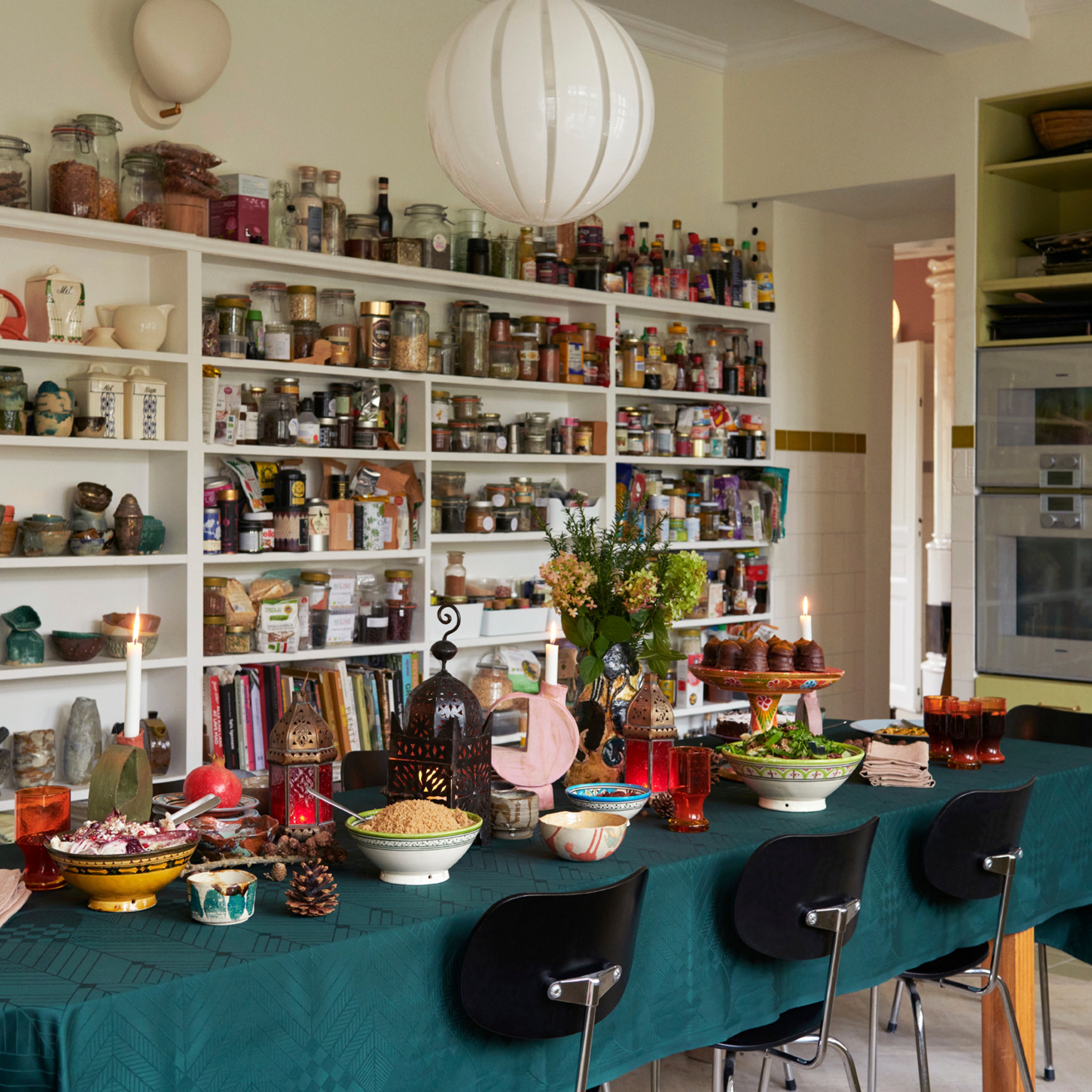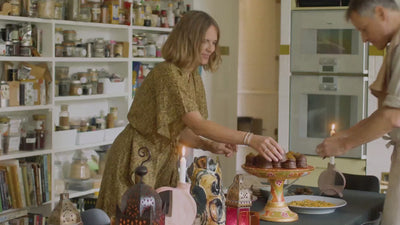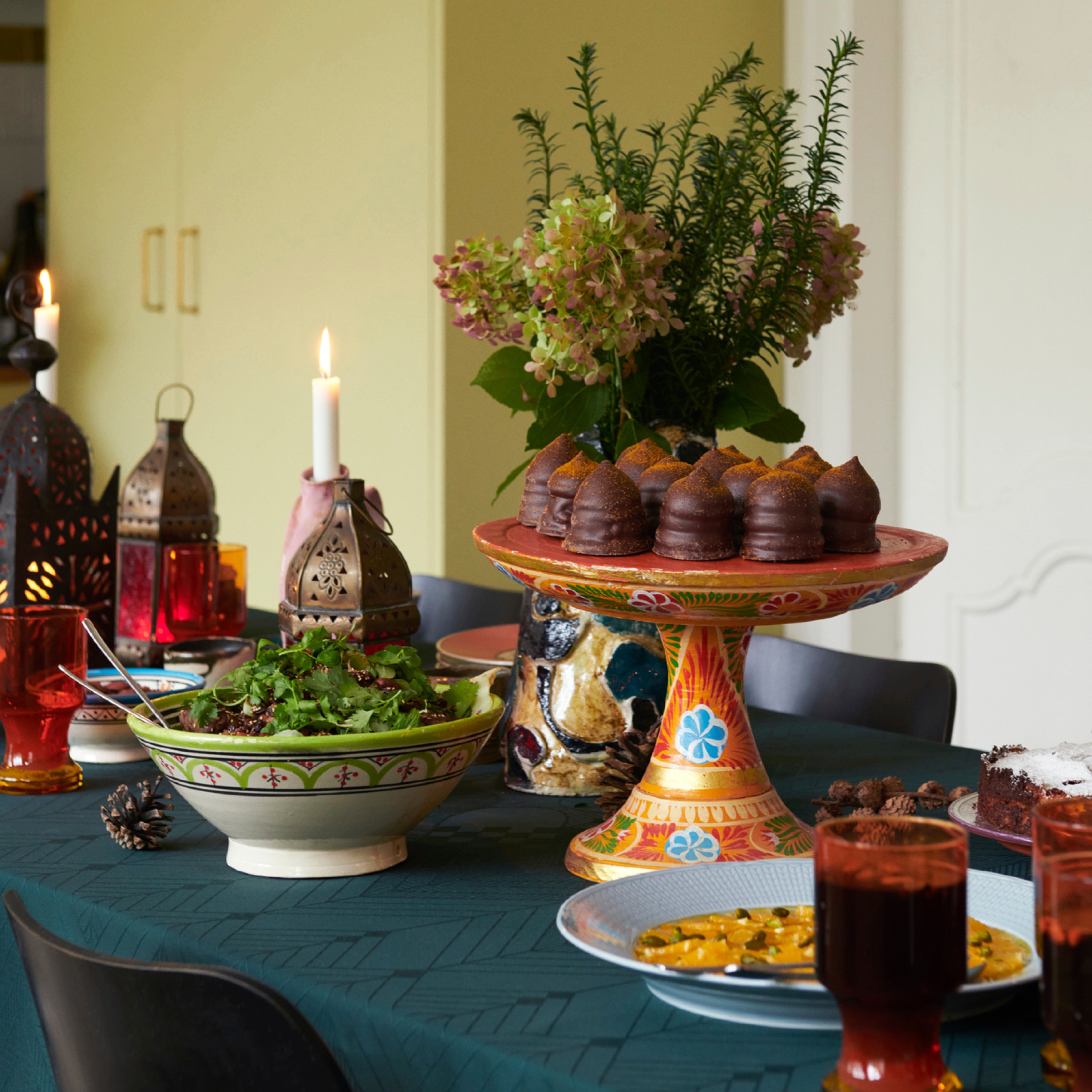 Christina Meyer Bengtsson: Ondertussen ben ik verantwoordelijk voor de tafelschikking. Het is een combinatie van een Midden-Oosterse stijl en Deense kerst. Ik wil dat het divers en kleurrijk is met oud porselein en wat keramiek dat ik zelf heb gemaakt. Ik vind het heerlijk om oude kerstversieringen te vinden op rommelmarkten. Kabouters, kleine Deense vlaggetjes en leuke dingen. Ik vind het leuk om nostalgisch te worden en de kerstversiering zo groot mogelijk te maken. We maken ook altijd een kerstmannenlandschap in de eetkamer.