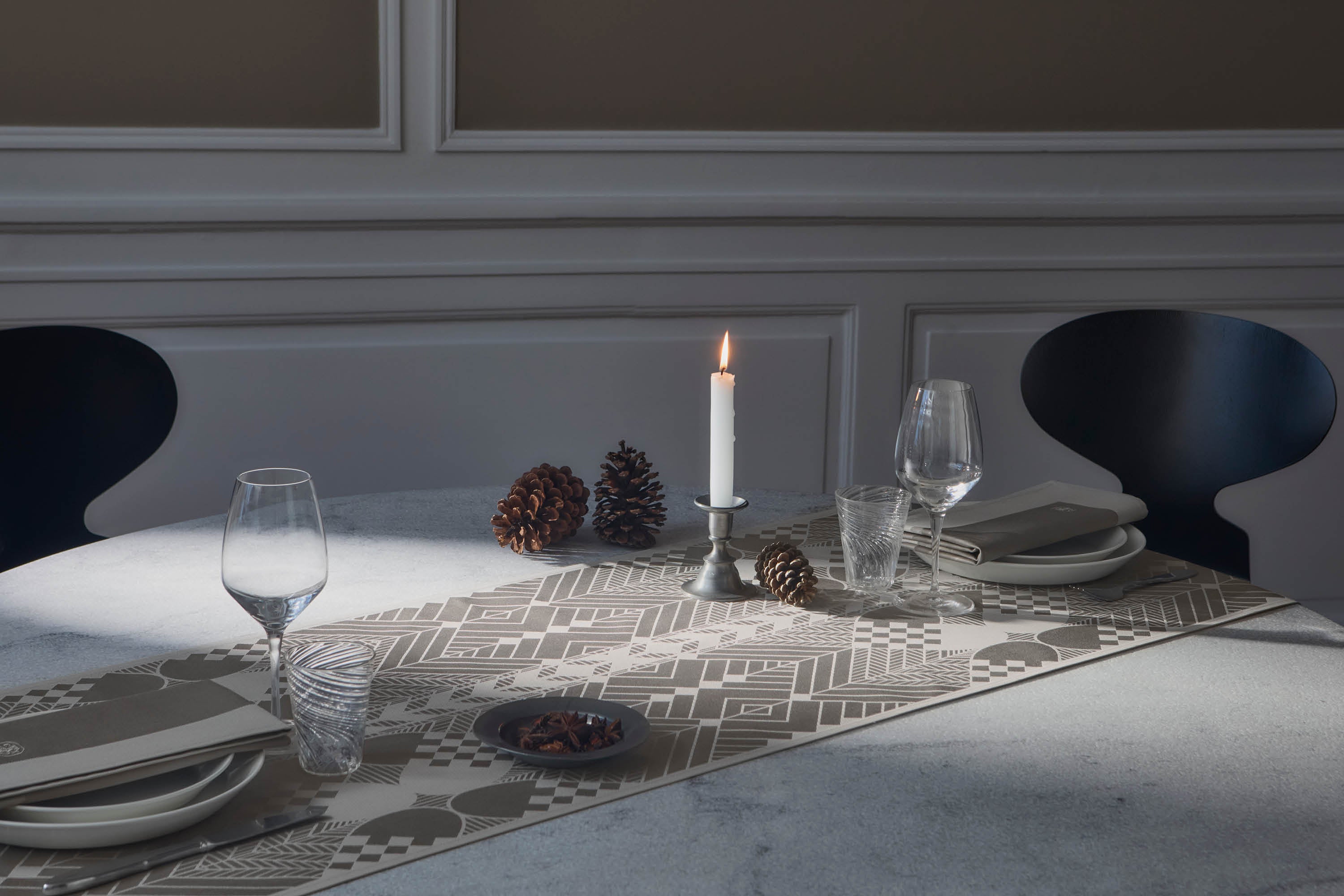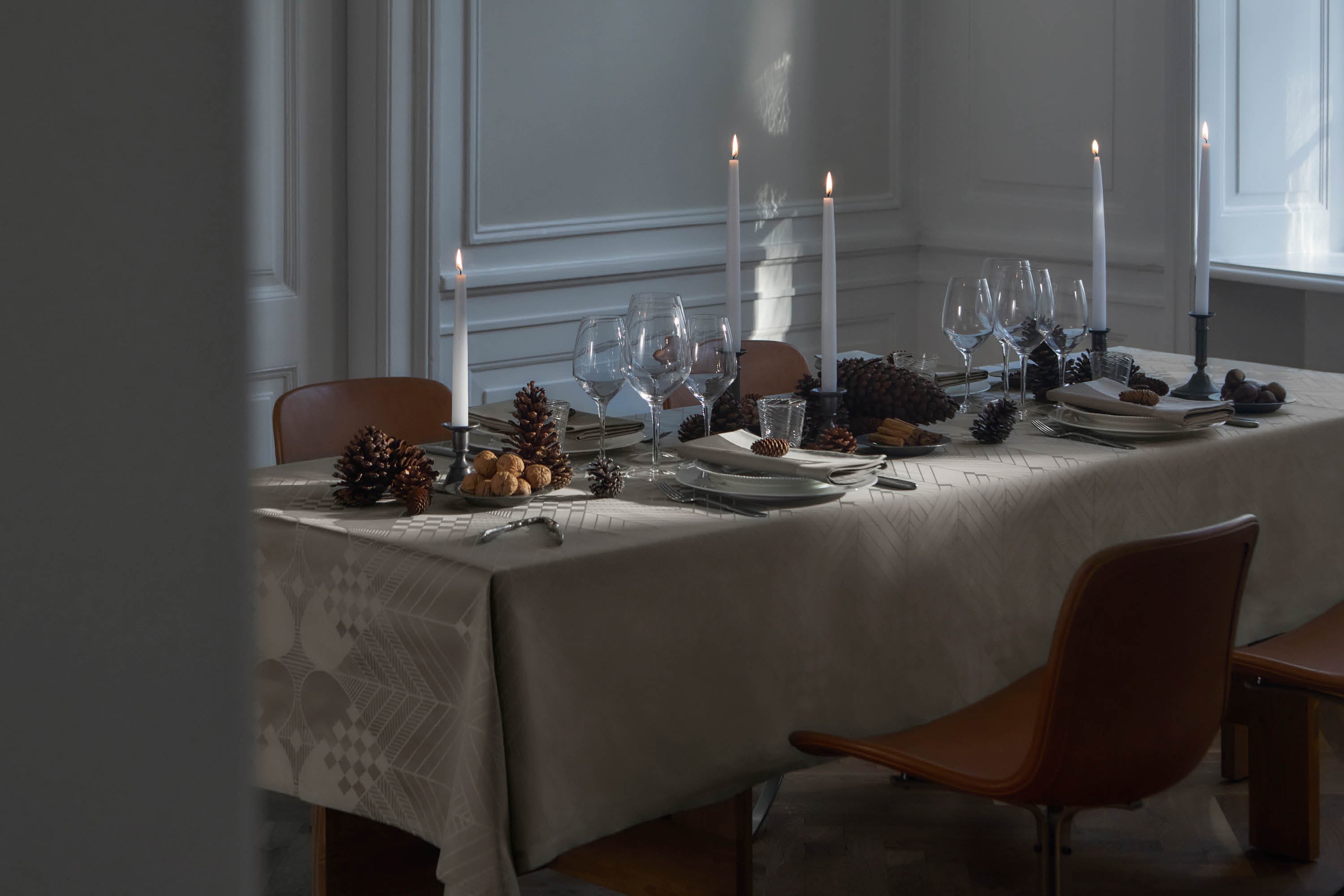 Georg Jensen Damask's iconische kerstdessin van gevlochten kerstharten en gestileerde sparrentakken komt prachtig tot zijn recht in de kleur Hazel Wood. Een kleur geïnspireerd op de gladde, grijsbruine bast van oude hazelaars. Perfect voor de kersttafel als het elegant en natuurlijk moet zijn.