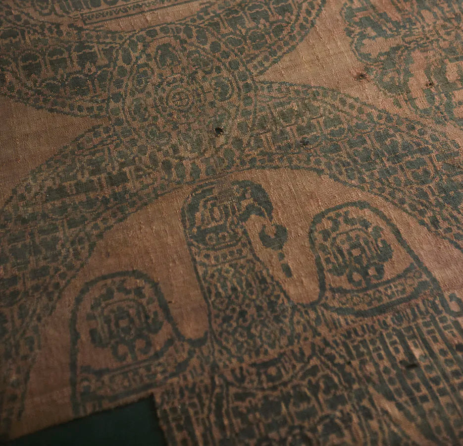 Als symbool van koninklijke macht is het doek, waarvan wordt aangenomen dat het afkomstig is uit Byzantium, versierd met een motief van de adelaar, wiens vrijgevigheid altijd iets achterlaat als hij eet. De adelaar houdt een halvemaanvormig sieraad in zijn snavel en heeft zijn vleugels half uitgevouwen. Het wordt omringd door een ovaal medaillonvormig arabesk patroon.