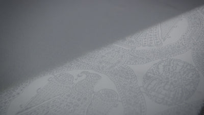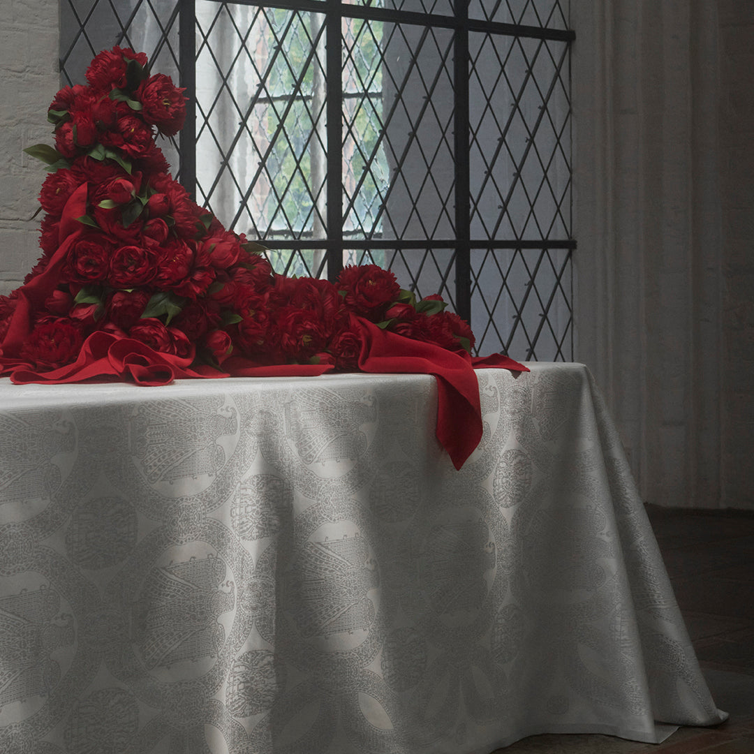 Sct. Knuds Eagle tafelkleed is geweven van 100% dubbel gedraaid gekamd katoen en is verkrijgbaar in de kleur Light Grey.
