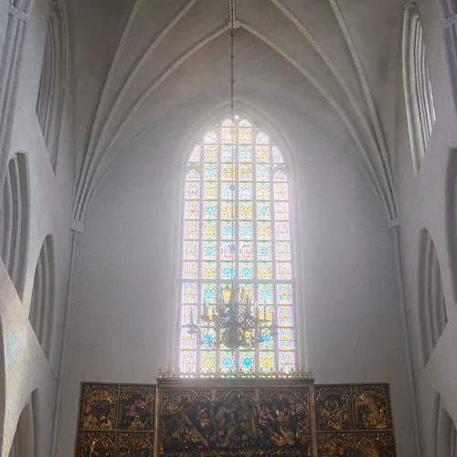 Georg Jensen Damask heeft de gelegenheid gehad om het Sct. Knuds Eagle Cloth te fotograferen in de kathedraal van Odense, waar het bijna 1000 jaar oude textiel wordt tentoongesteld.