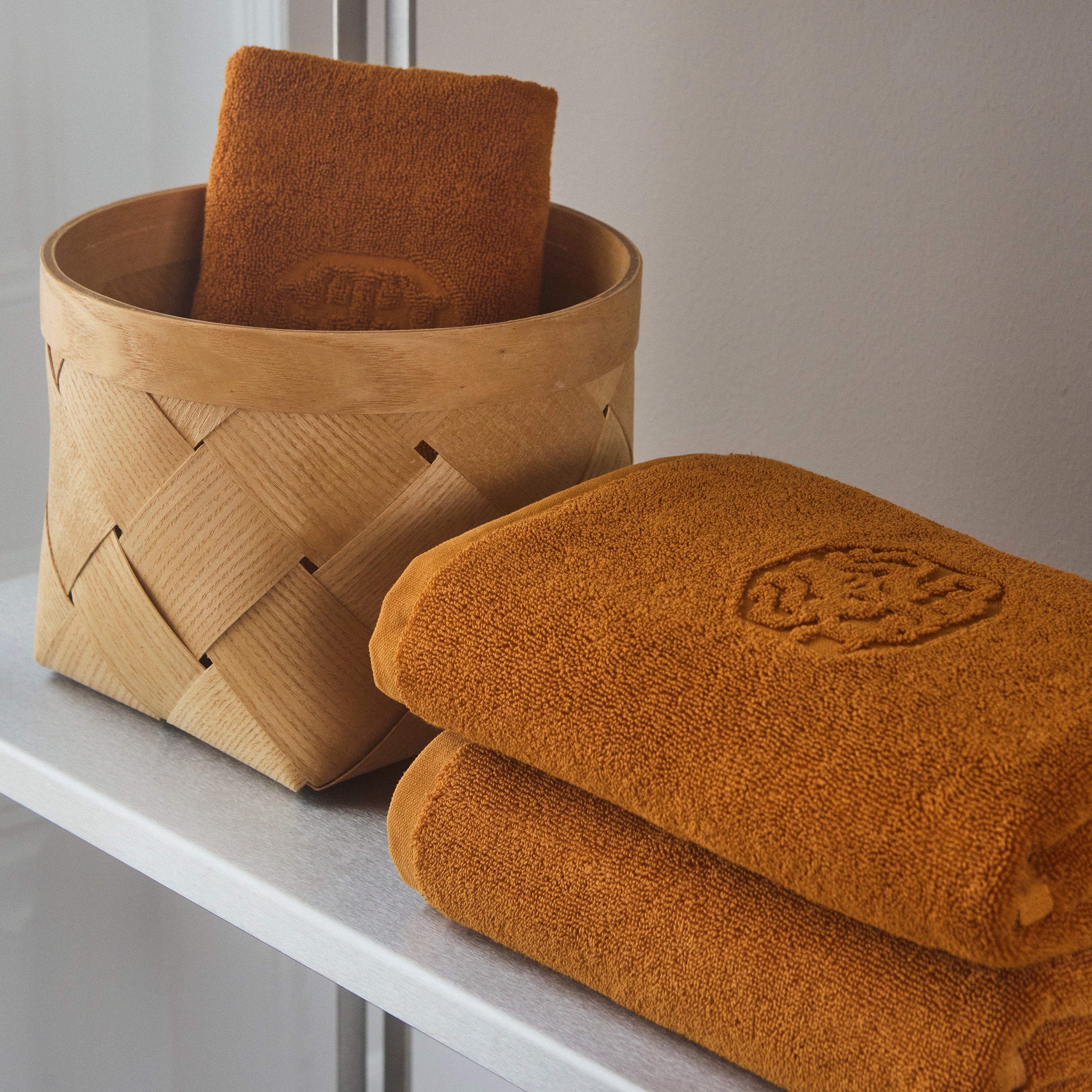 De washandjes zijn versierd met een geweven Georg Jensen Damask -logo als een extra stijlvol detail in het ontwerp.