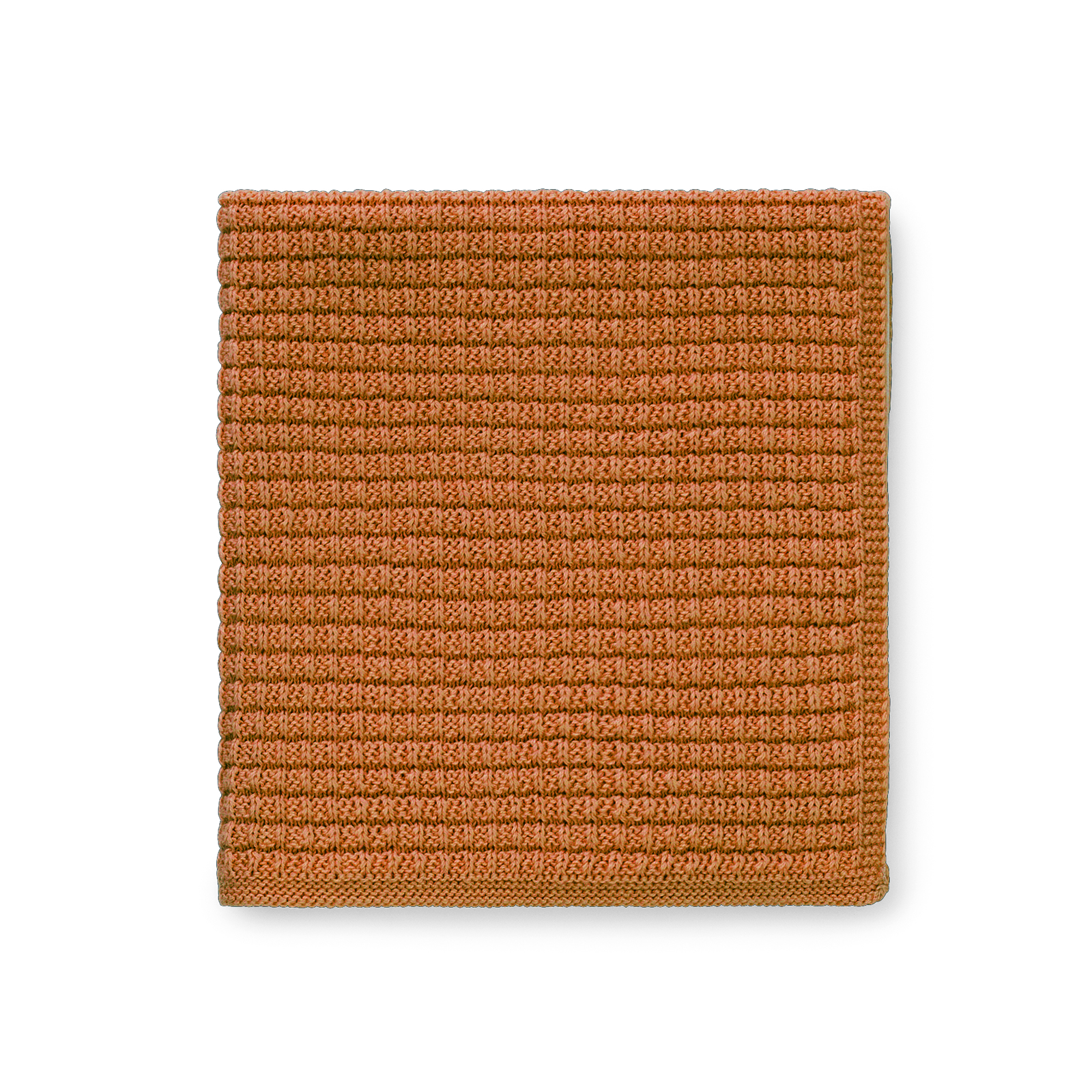 Strukturstrikket karklud i 100% bomuld. Chanterelle er en dyb orange med undertoner af karamel. Farven er inspireret af kantarellens smukke nuancer.