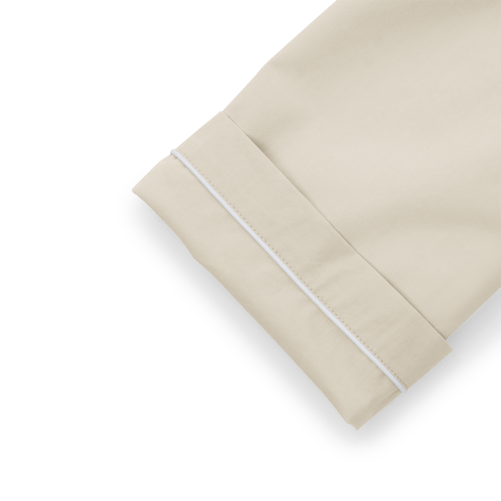 Unisex pyjamas percalevævet i supimabomuld. Pyjamassen har et klassisk snit og elegante, hvide pipings. Archive Linen er en lys beige farve med referencer til linned fra vores århundreder gamle arkiv.