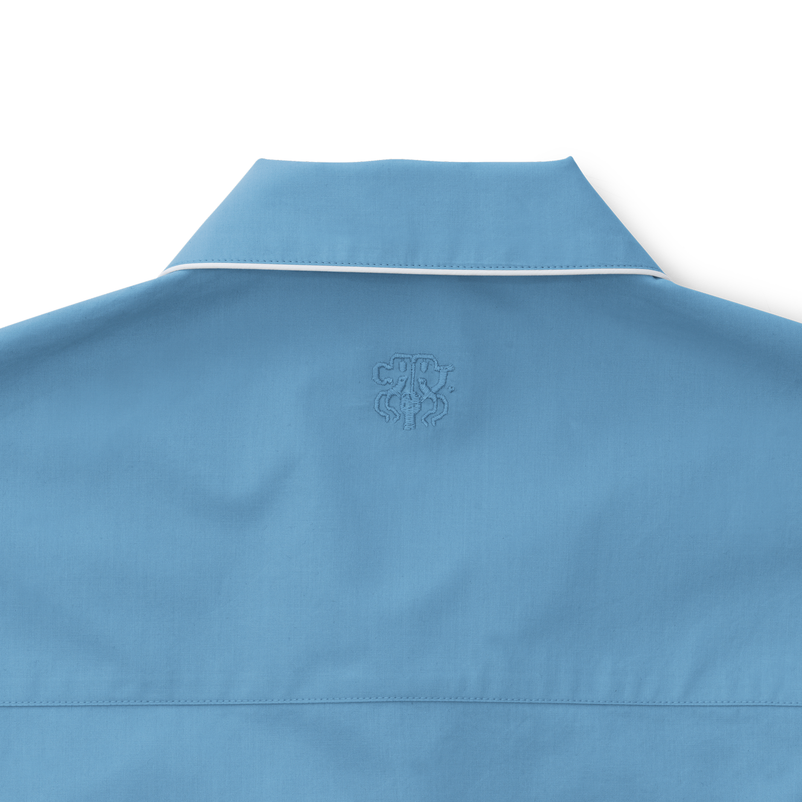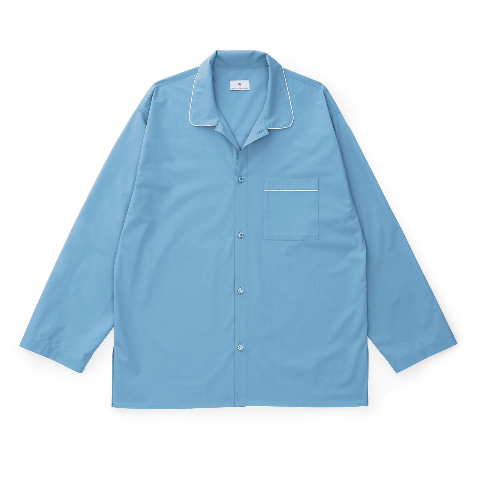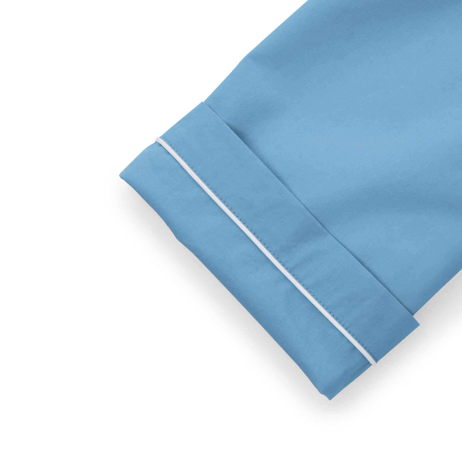 Unisex pyjamas percalevævet i supimabomuld. Pyjamassen har et klassisk snit og elegante, hvide pipings. Bright Blue er en mættet nuance af blå med referencer til den klare sommerhimmel.
