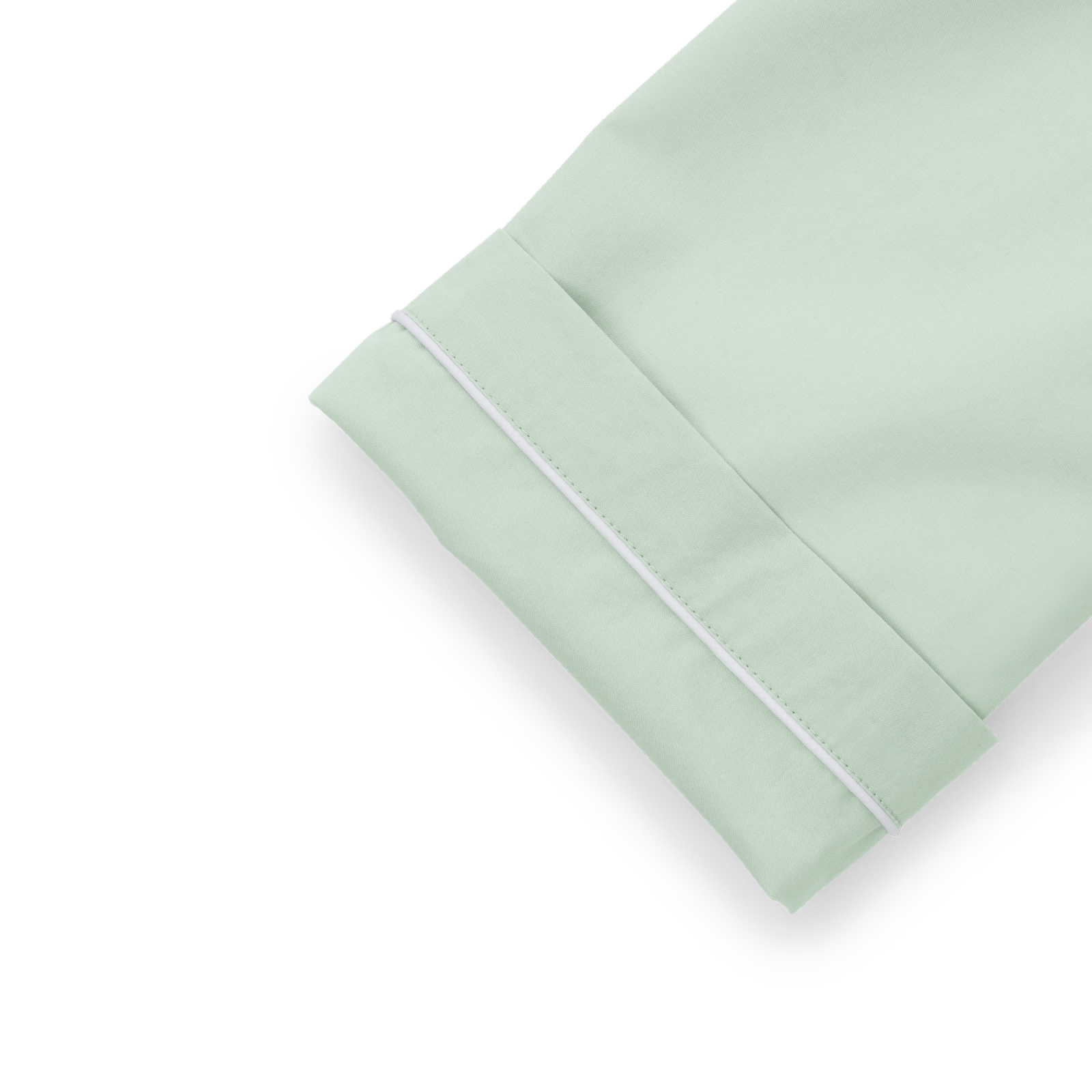 Unisex pyjamas til børn percalevævet i supimabomuld. Den klare, grønblå farve, Glass Green, er inspireret af farven på råglas.