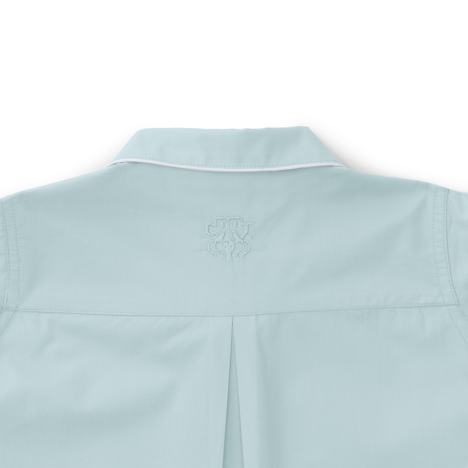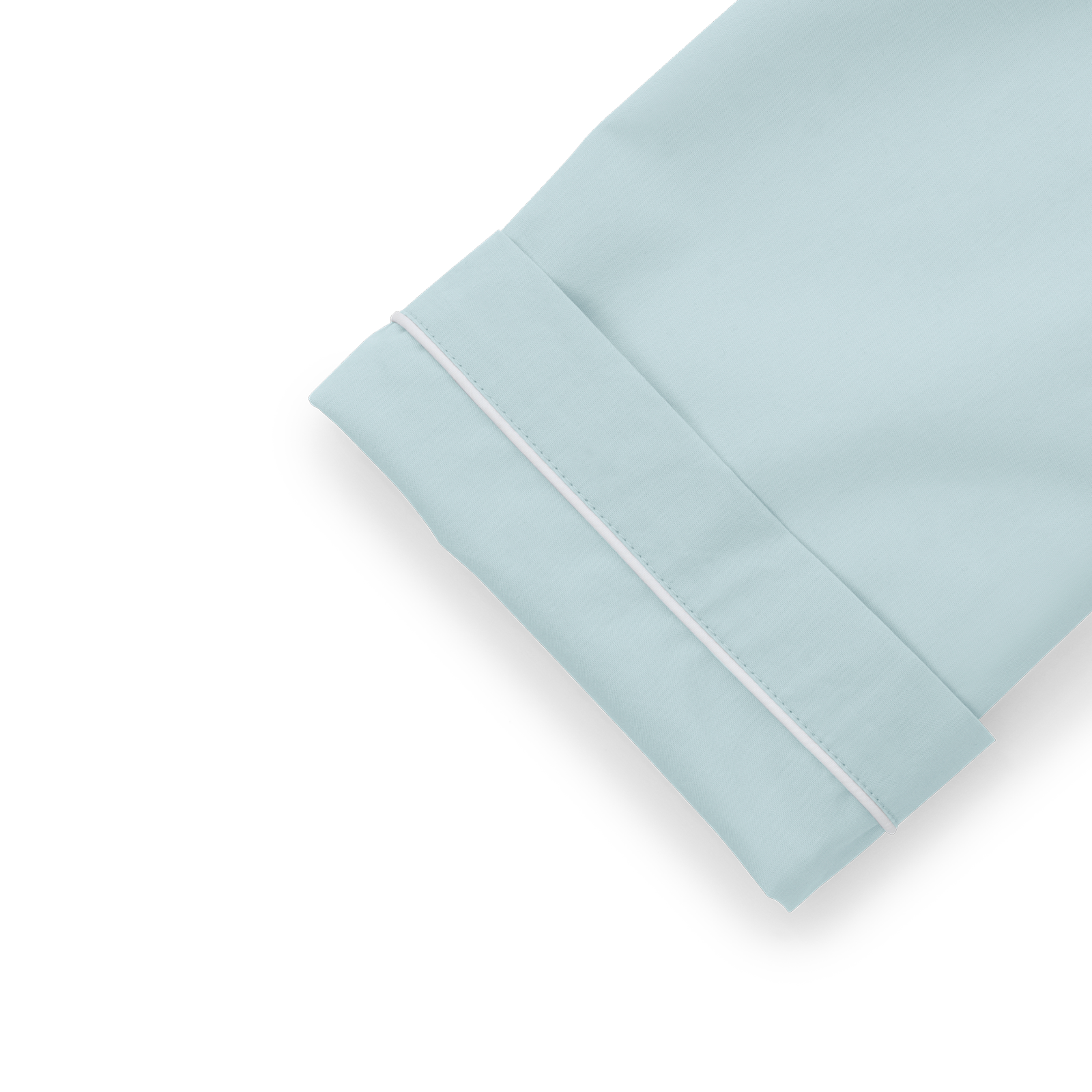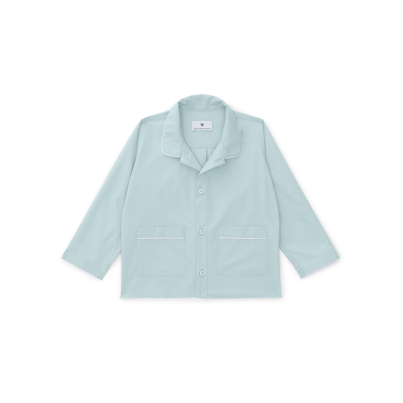 Unisex pyjamas til børn percalevævet i supimabomuld. Minimal Blue er en helt let variant af lyseblå med et strejf af aquanuancer.