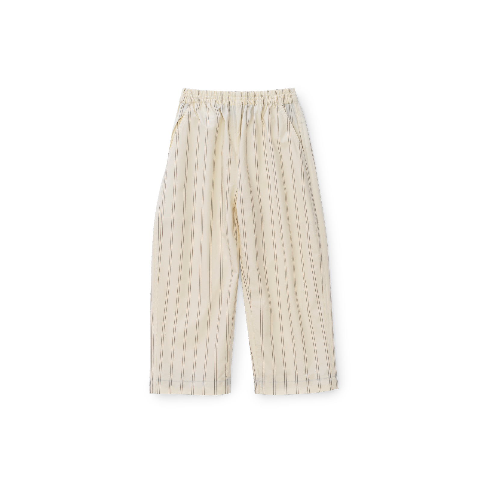 Unisex pyjamas til børn percalevævet i supimabomuld. Pyjamassen har et klassisk snit, elegante pipings og slanke nålestriber i Walnut med en baggrund i farven Archive Linen - en lys, nøddefarvet nuance.