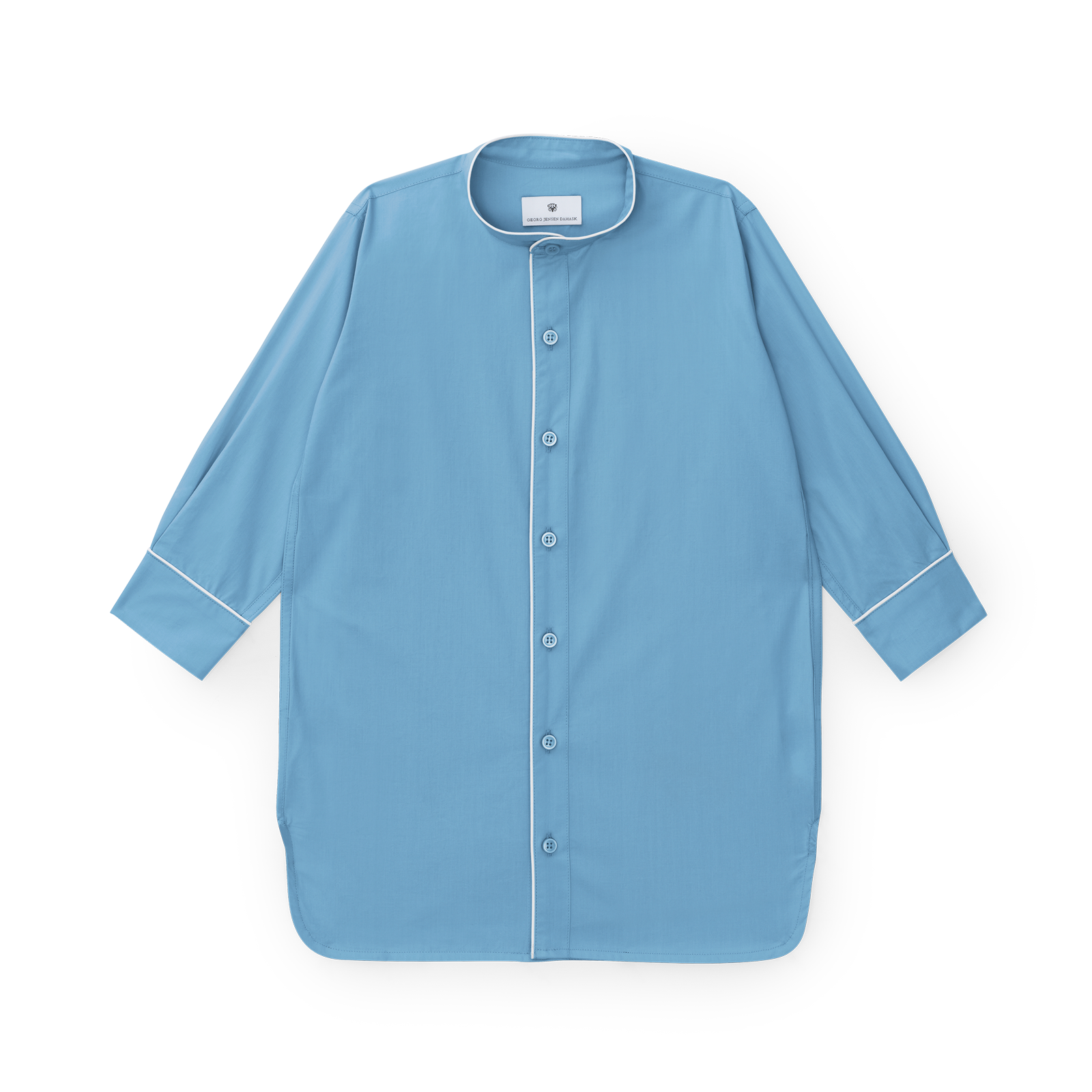 Skjortekjolen har et klassisk snit og elegante, hvide pipings. Den har sideslidser, indvendige sidelommer, kinakrave og Georg Jensen Damasks ikoniske logo broderet på bærestykket i nakken.