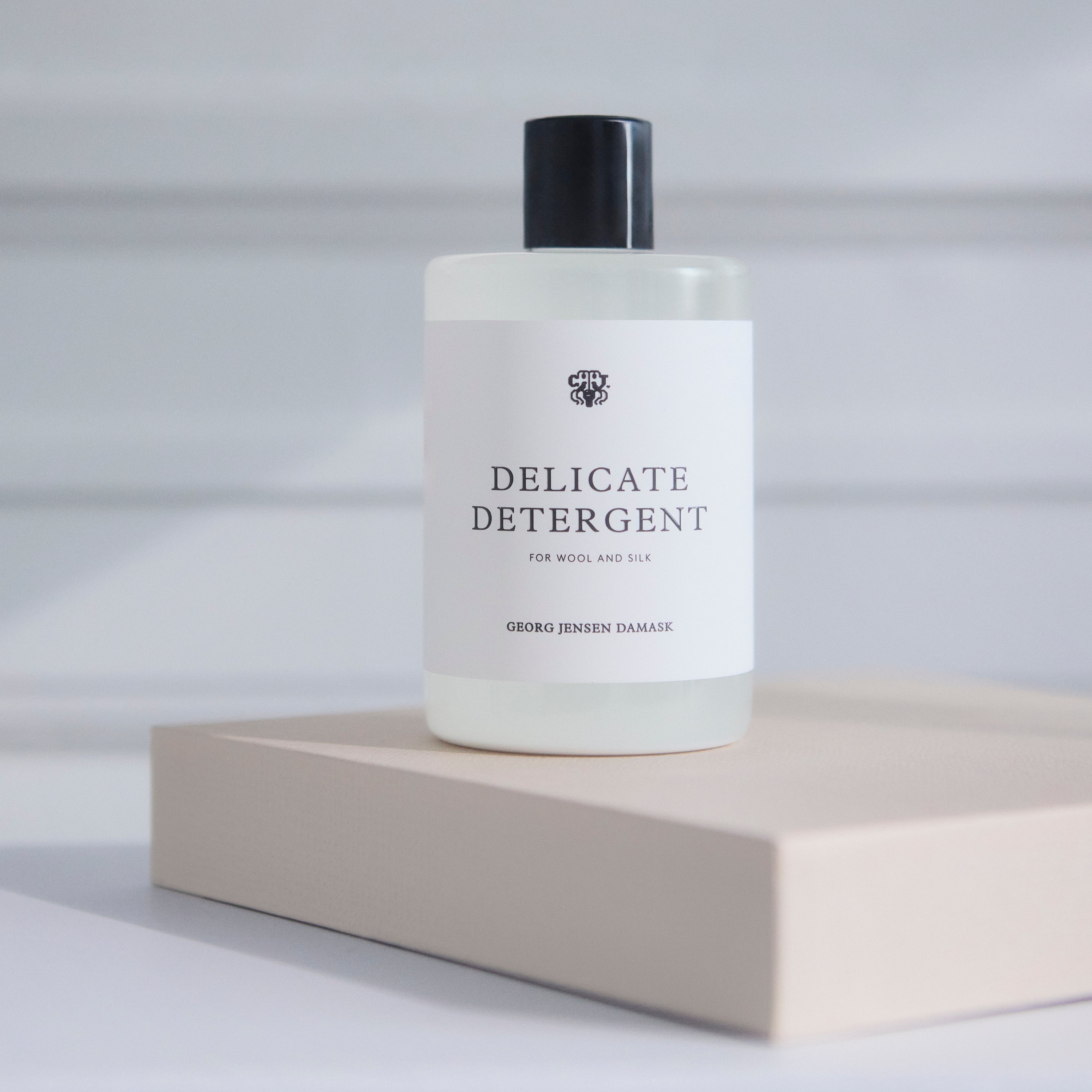 Delicate Detergent er udviklet af Georg Jensen Damask og er et skånsomt flydende vaskemiddel til uld og silke. Vaskemidlet er uden enzymer for at undgå at udtørre de sarte uld- og silkefibre. Med Delicate Detergent efterlades dine tekstiler rene og bløde.