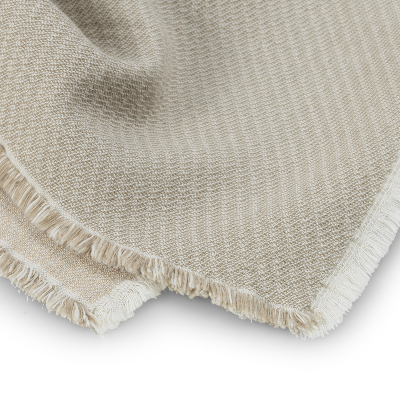 Elegant plaid i 100 % blød bomuld. Vævningen giver Weaver et diskret strukturmønster, som indrammes af korte frynser langs kanterne. Farven Sand er en lys nuance af beige.