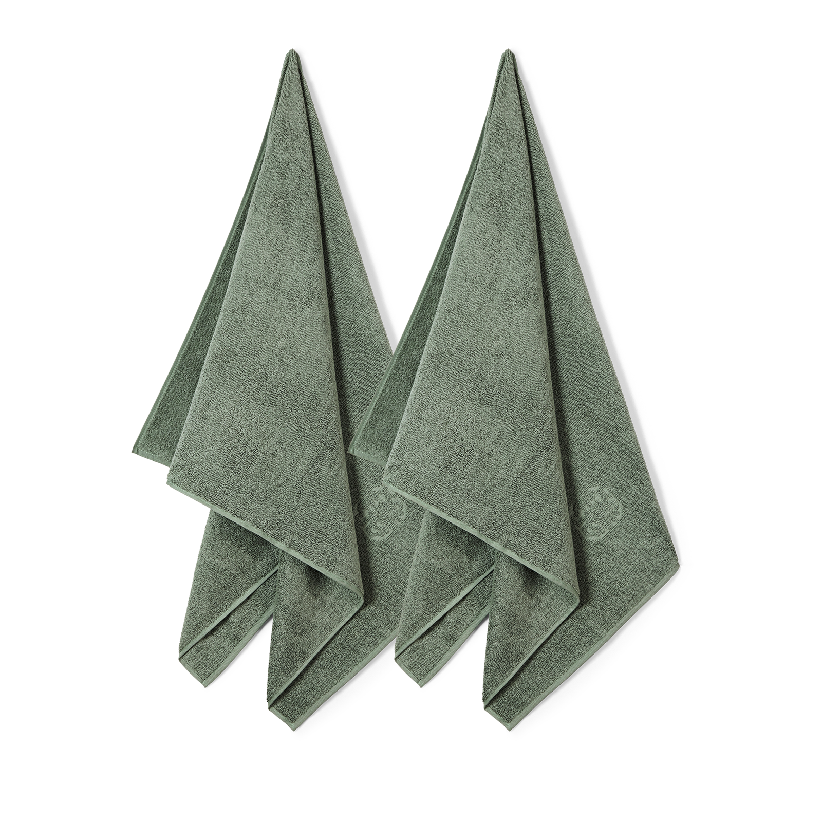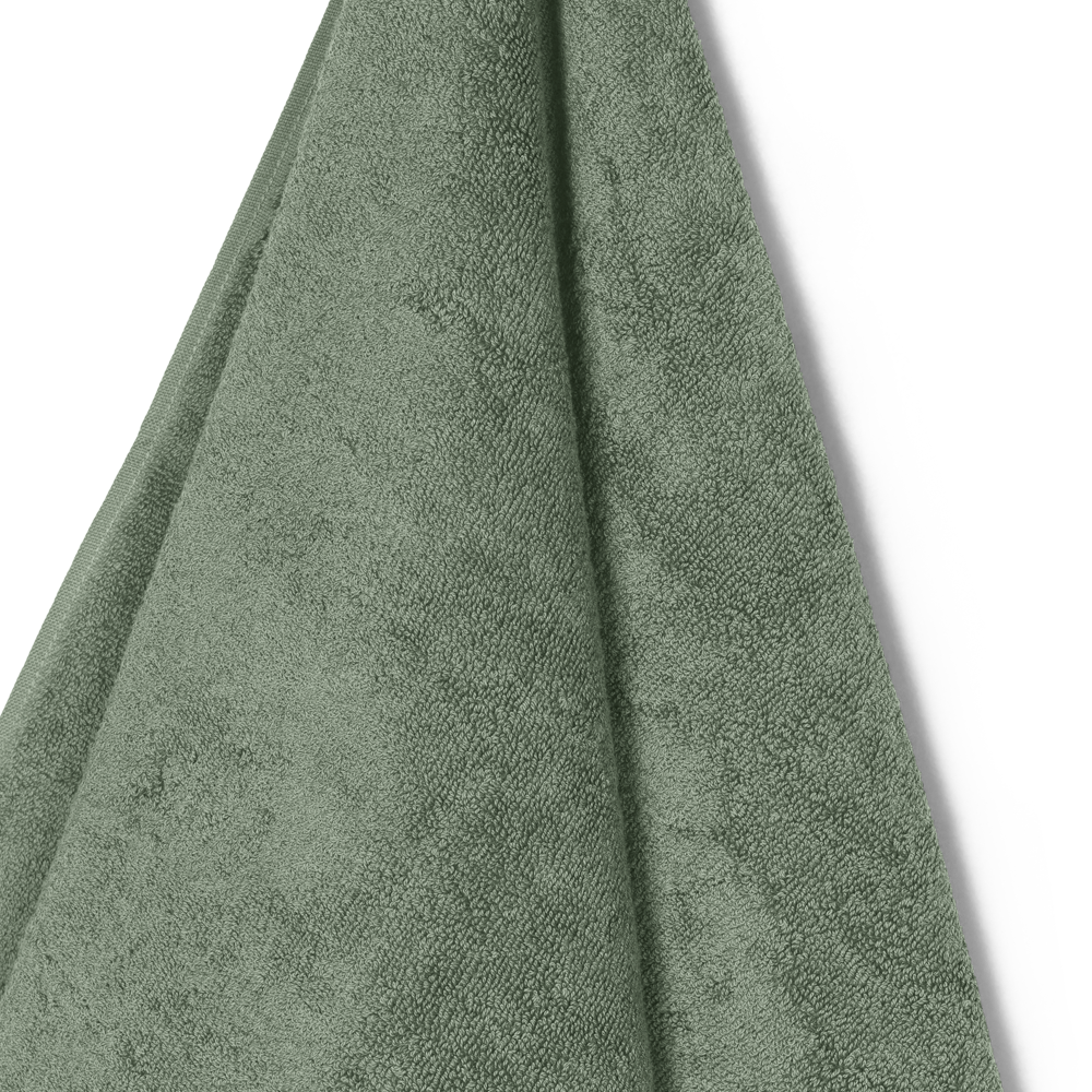 Pakke med to Damask Terry badehåndklæder i farven Mineral Green – en smuk, støvet nuance af grøn.