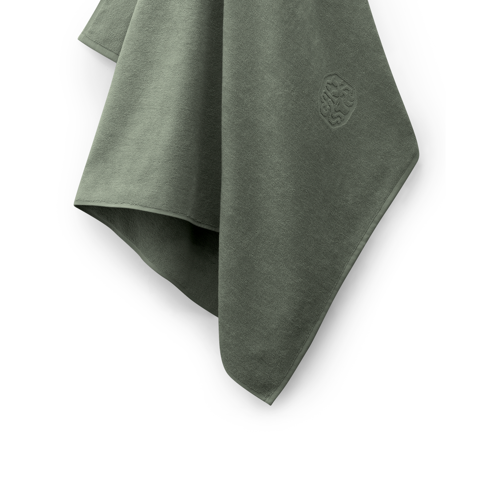 Pakke med to Damask Terry badelagner i farven Mineral Green – en smuk, støvet nuance af grøn.