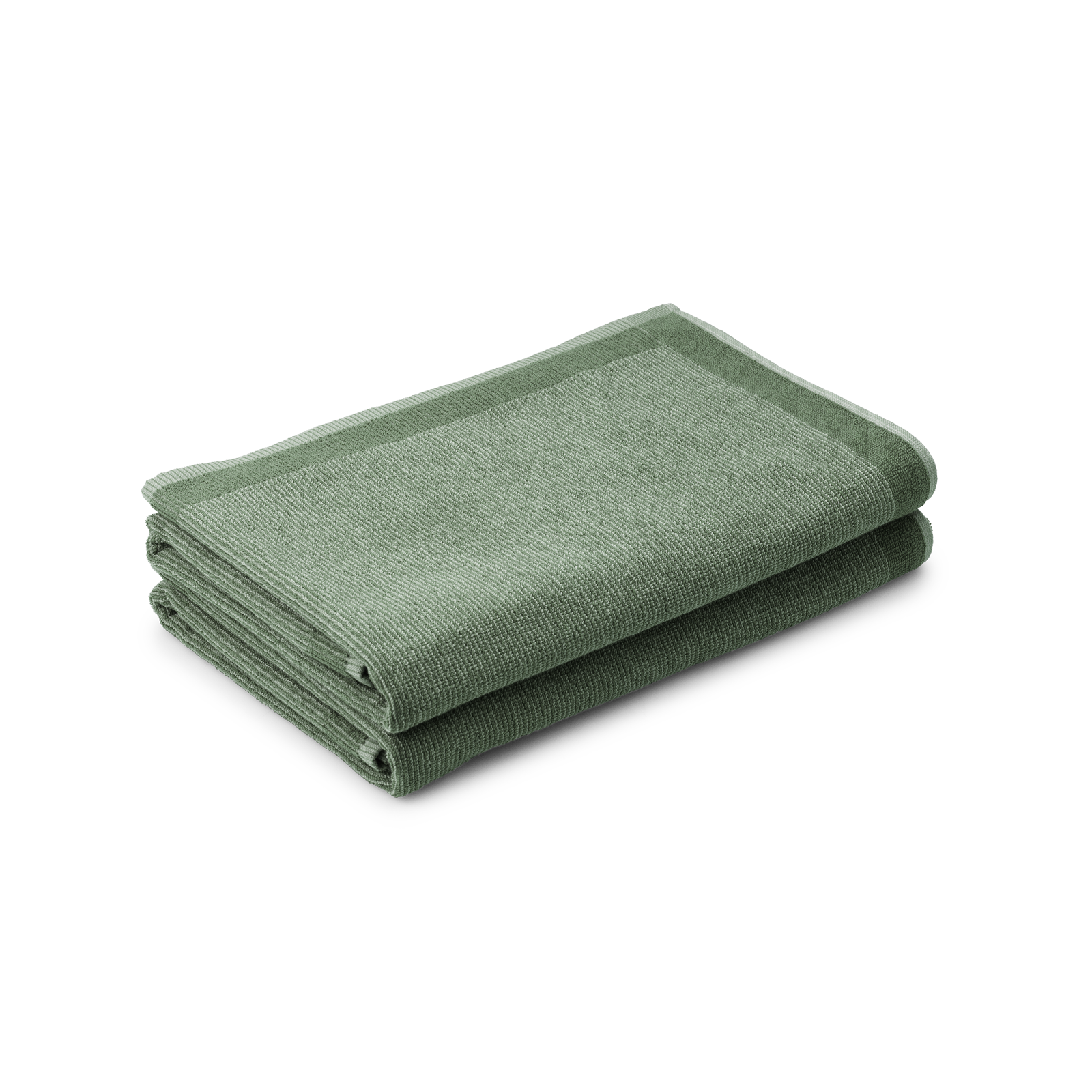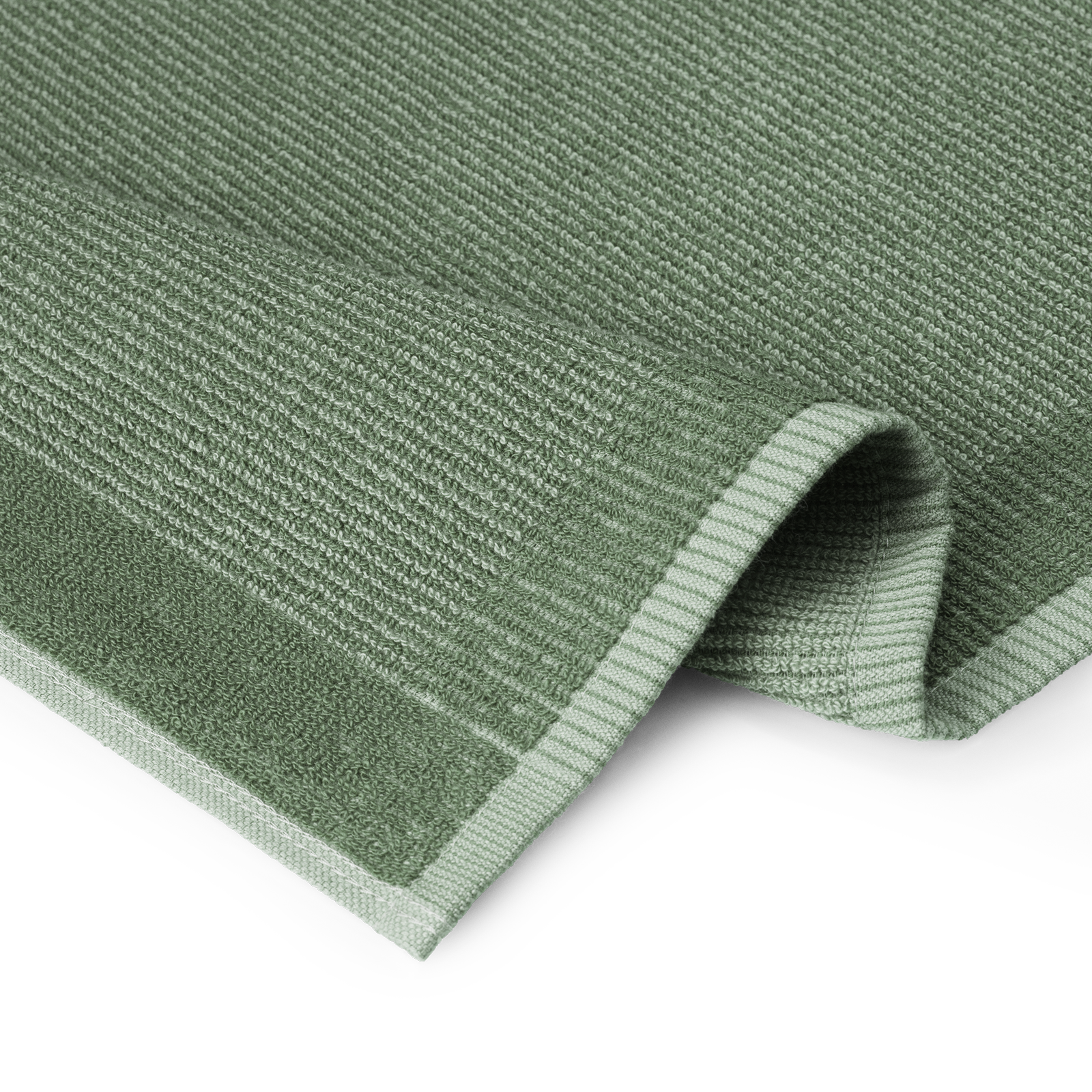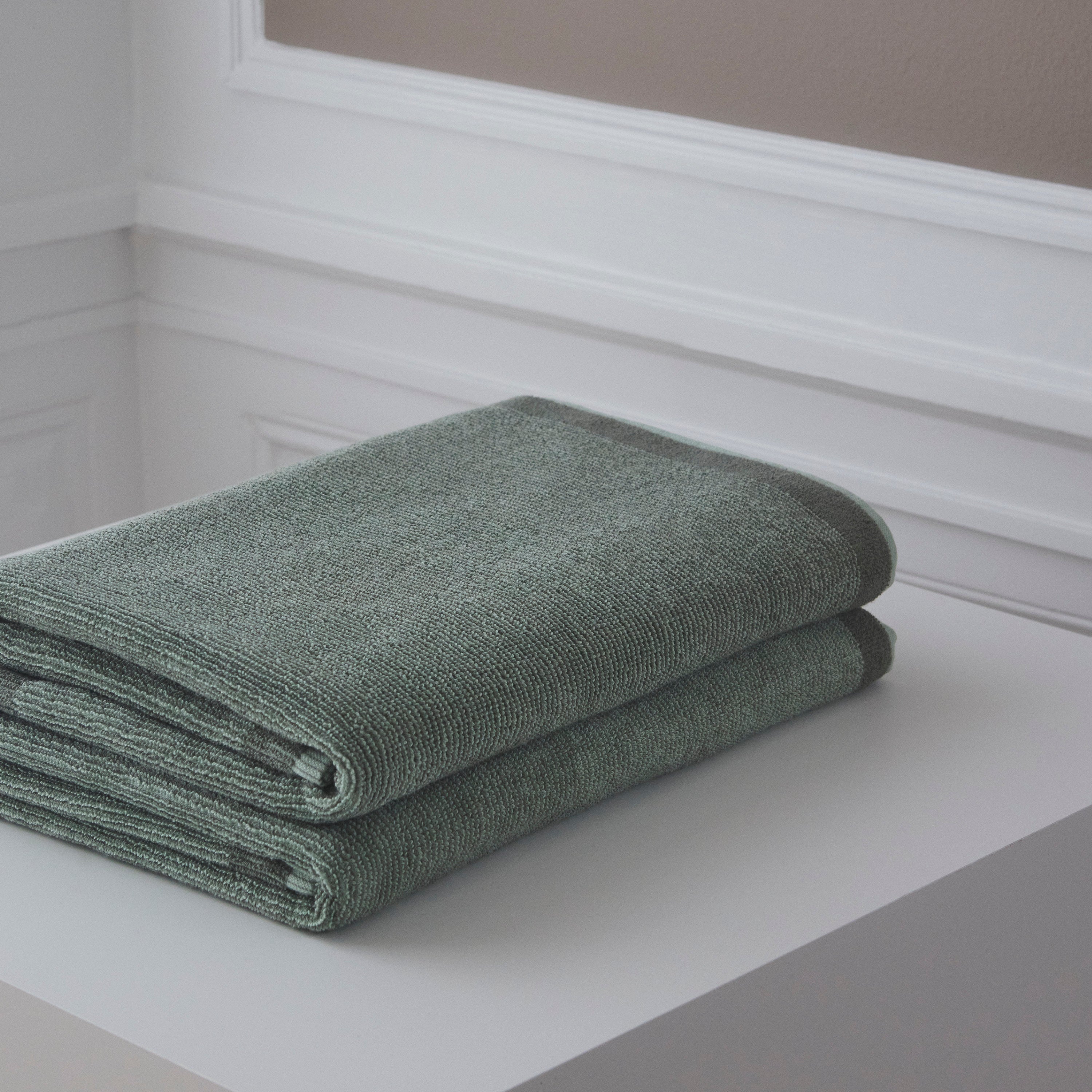 Solid badelagenet i 100 % bomuld har et enkelt udtryk med smalle striber og en elegant bort. Den raffinerede vævning gør, at badelagnet fylder mindre og er ideelt til rejsen eller sportstasken. Farven, Cedar Green, er inspireret af cedertræets kølige, grønne nuancer.
