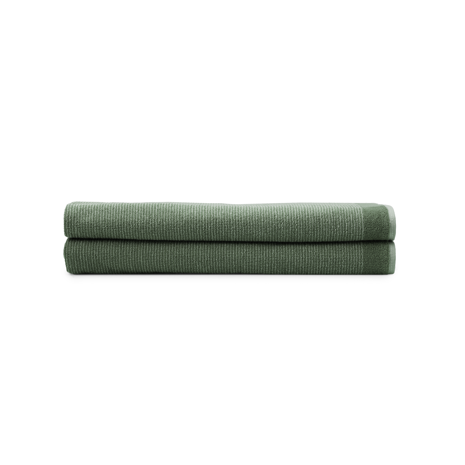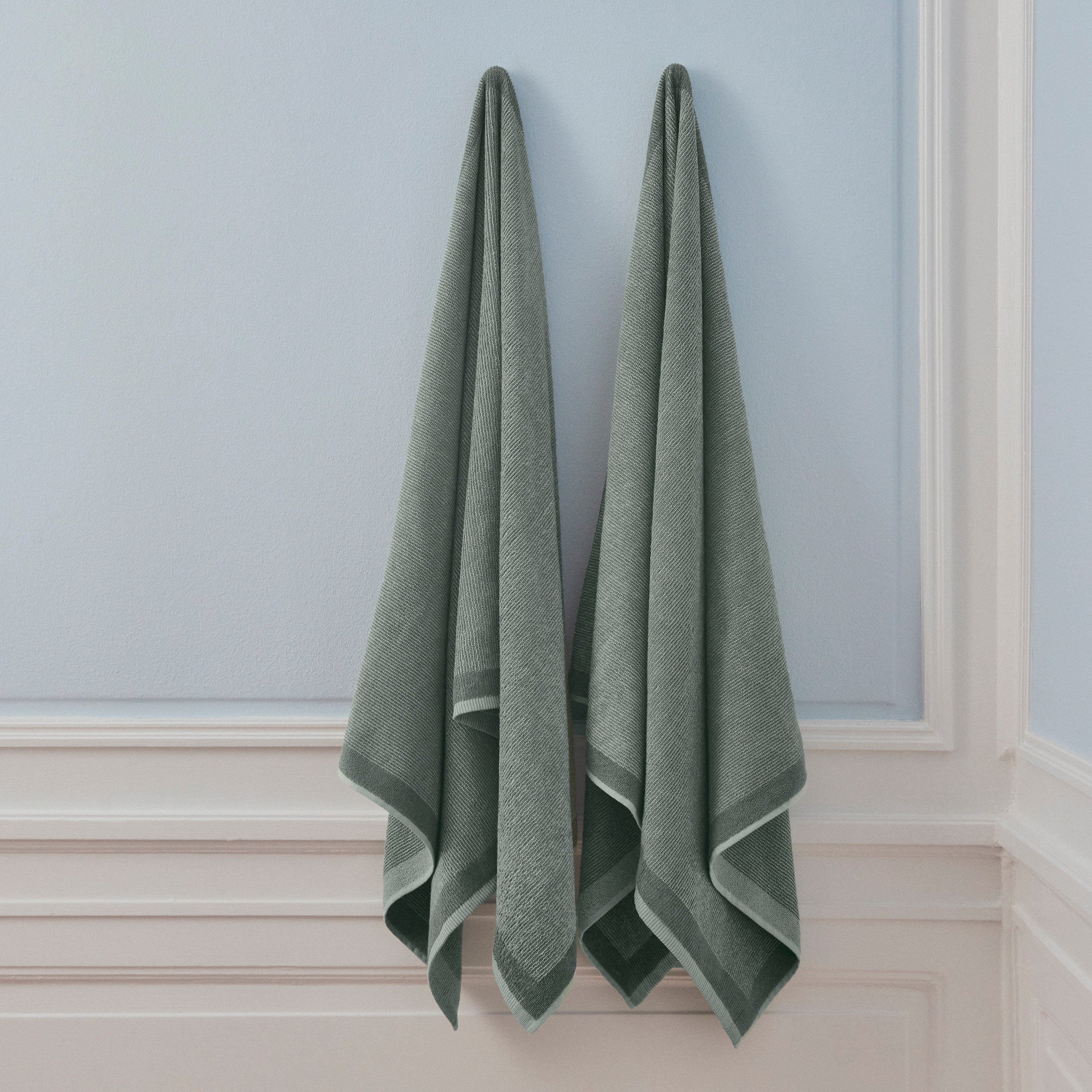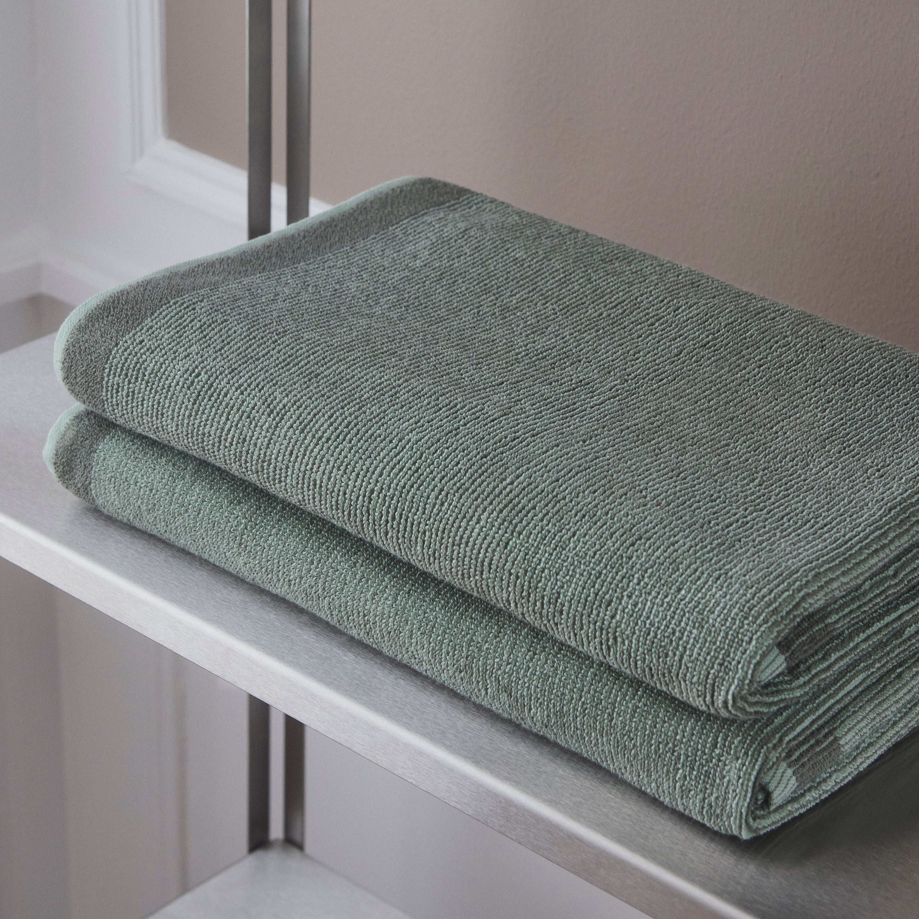 Solid badelagenet i 100 % bomuld har et enkelt udtryk med smalle striber og en elegant bort. Den raffinerede vævning gør, at badelagnet fylder mindre og er ideelt til rejsen eller sportstasken. Farven, Cedar Green, er inspireret af cedertræets kølige, grønne nuancer.