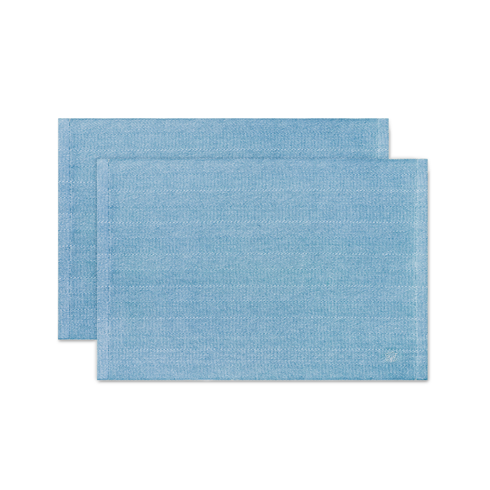 Dækkeservietterne er vævet i 100 % kraftig bomuld. Vævemetoden giver det karakteristiske sildebensmønster og de kraftige garner får dækkeservietterne til at ligge tungt på bordet. De har et lille broderet logo i samme nuance som vævningen.