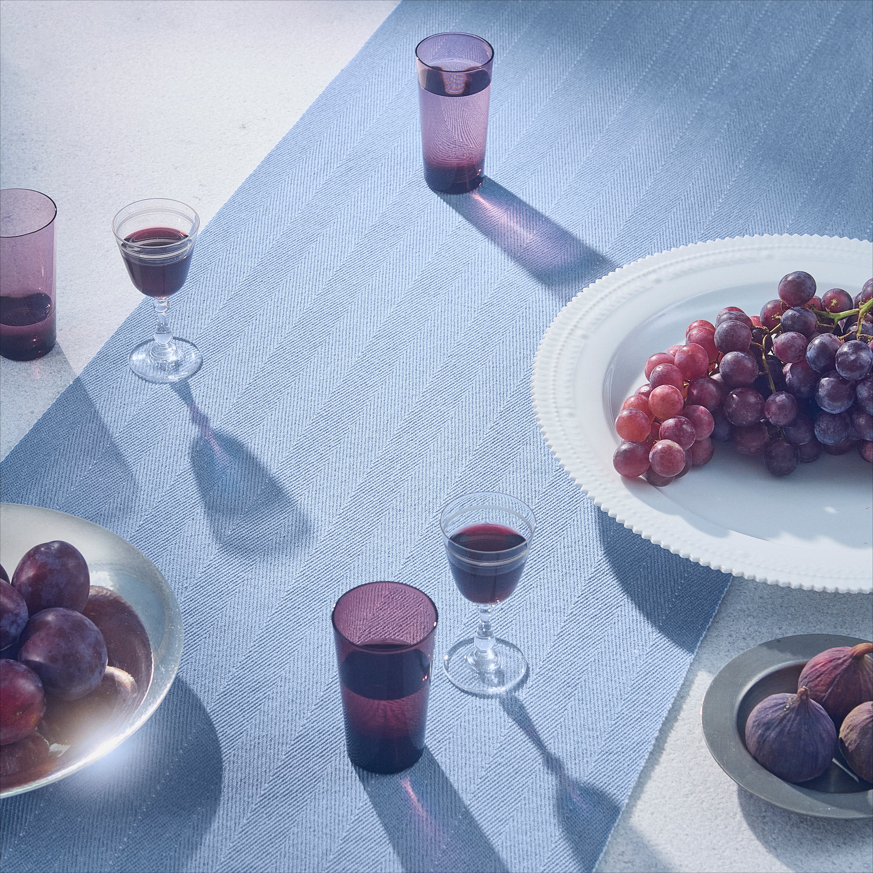 Dæk et elegant bord med Herringbone bordløberen i Blue Hour – en smuk og tidløs, mellemblå farve.