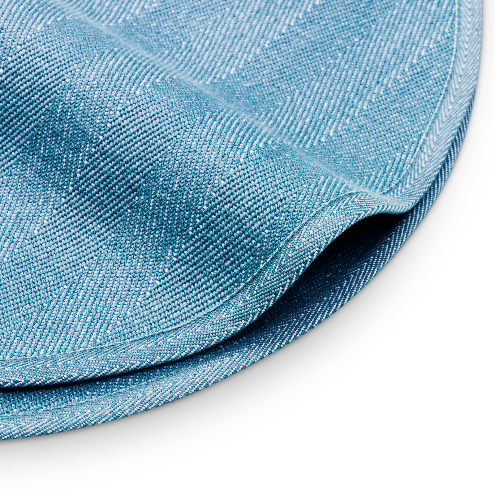 Dæk et elegant bord med de runde Herringbone dækkeservietter i Blue Hour – en smuk og tidløs, mellemblå farve.