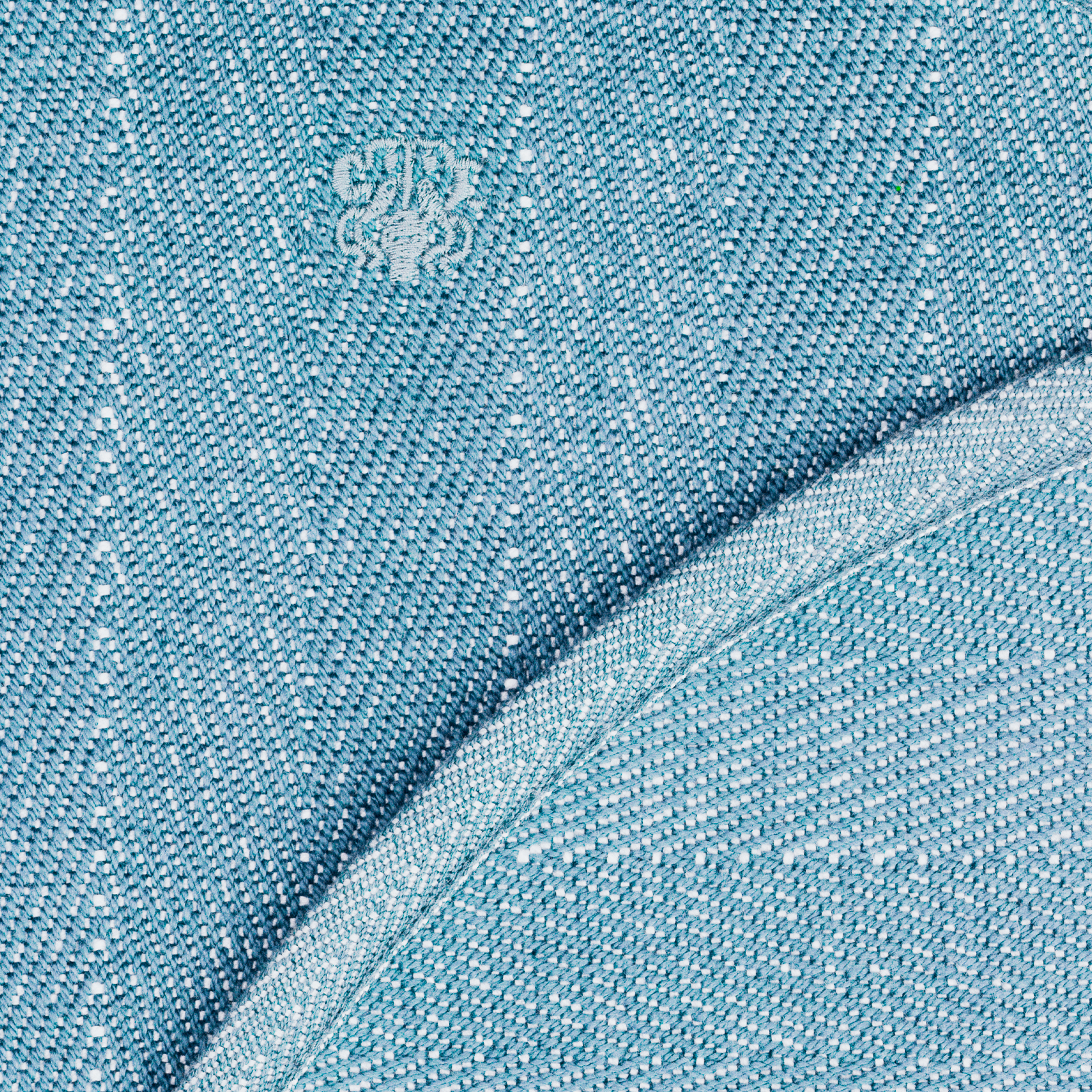 Dækkeservietterne er vævet i 100 % kraftig bomuld. Vævemetoden giver det karakteristiske sildebensmønster og de kraftige garner får dækkeservietterne til at ligge tungt på bordet. De har et lille broderet logo i samme nuance som vævningen.