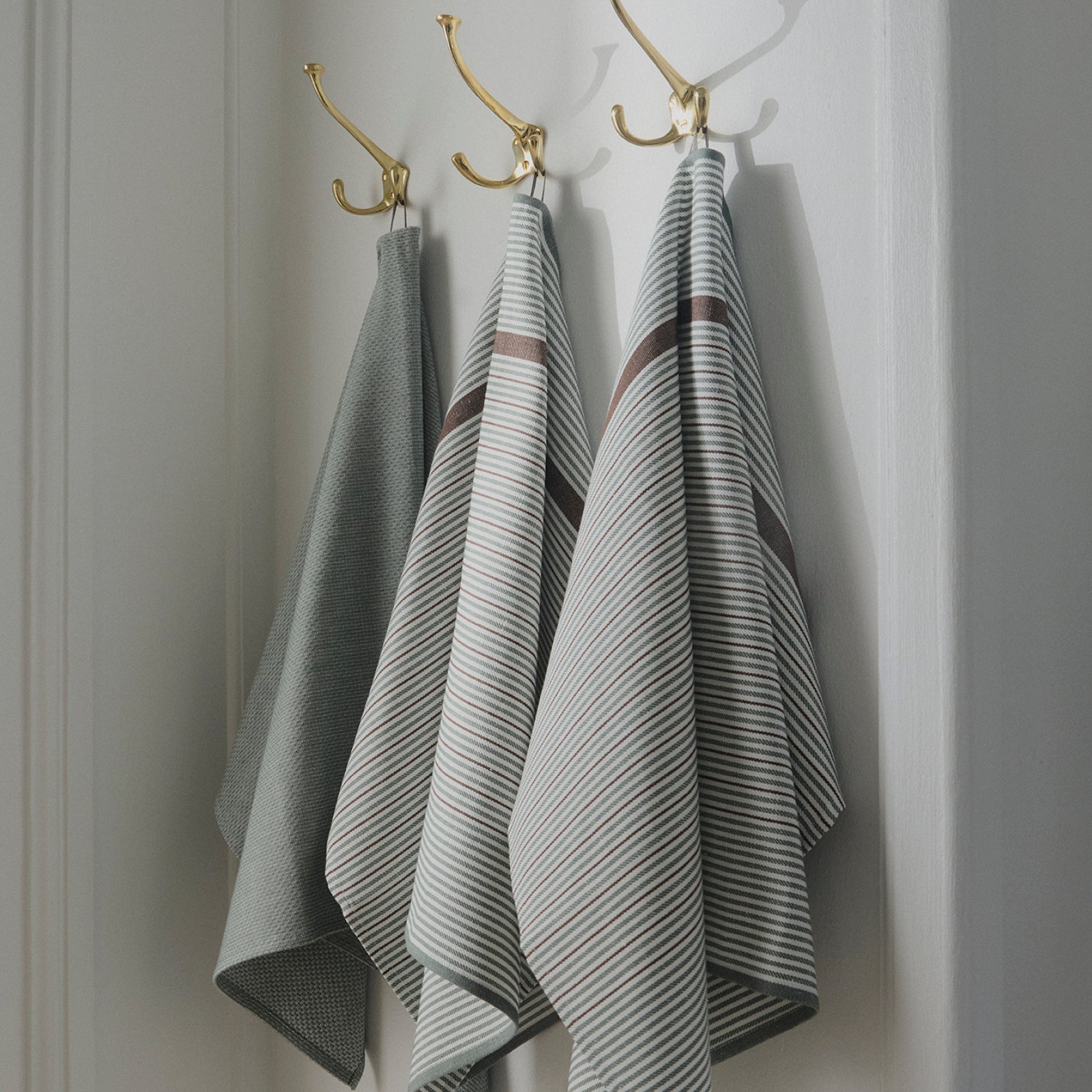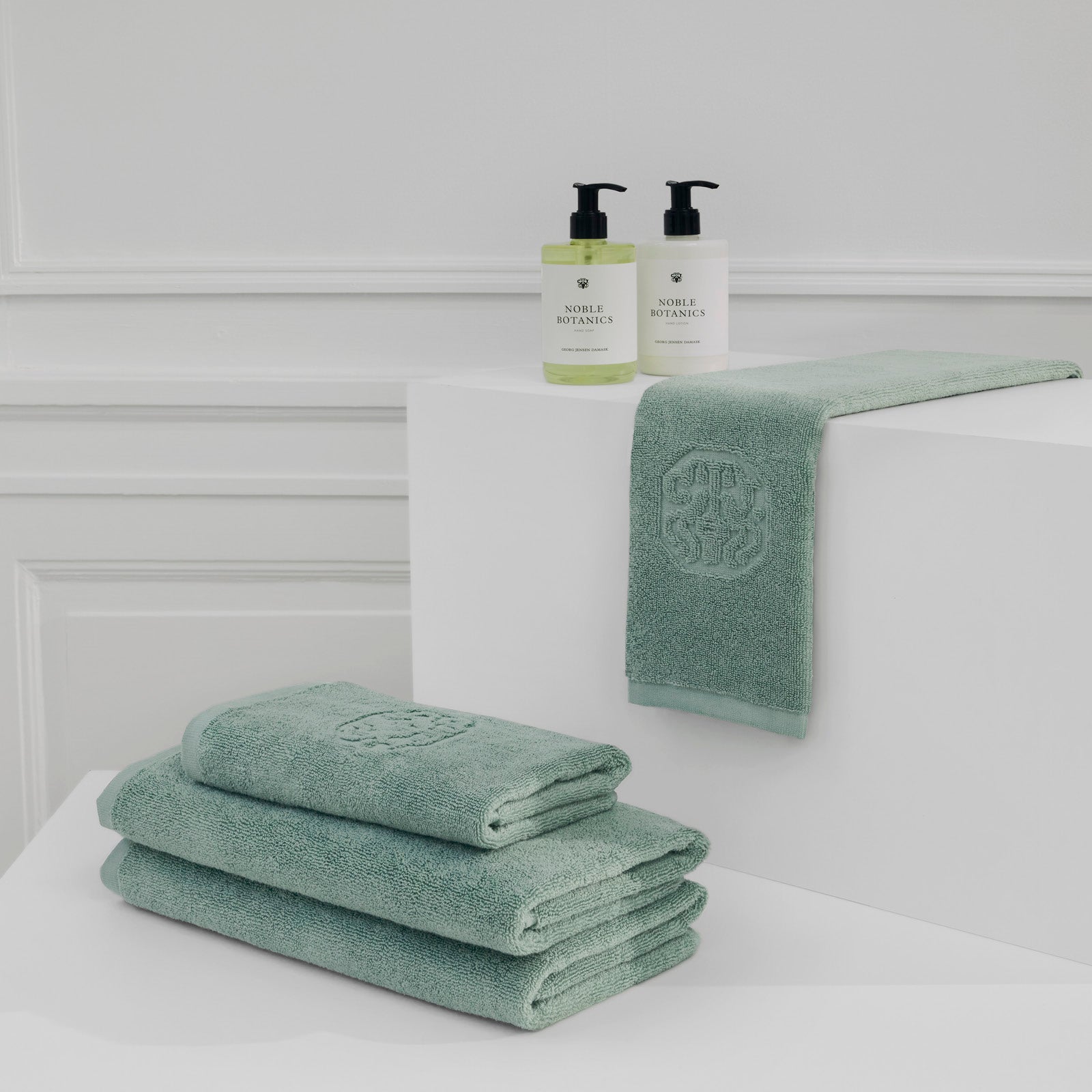 De Damast Terry-handdoeken hebben een eenvoudig ontwerp met het iconische Georg Jensen Damask-logo ingeweven. Ze zijn jacquardgeweven van 100% dubbelgesponnen, gekamd katoen, waardoor ze zacht, glanzend en sterk zijn.