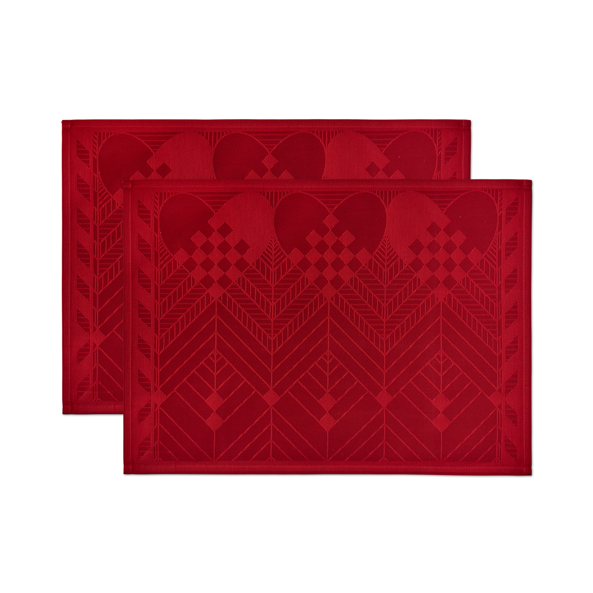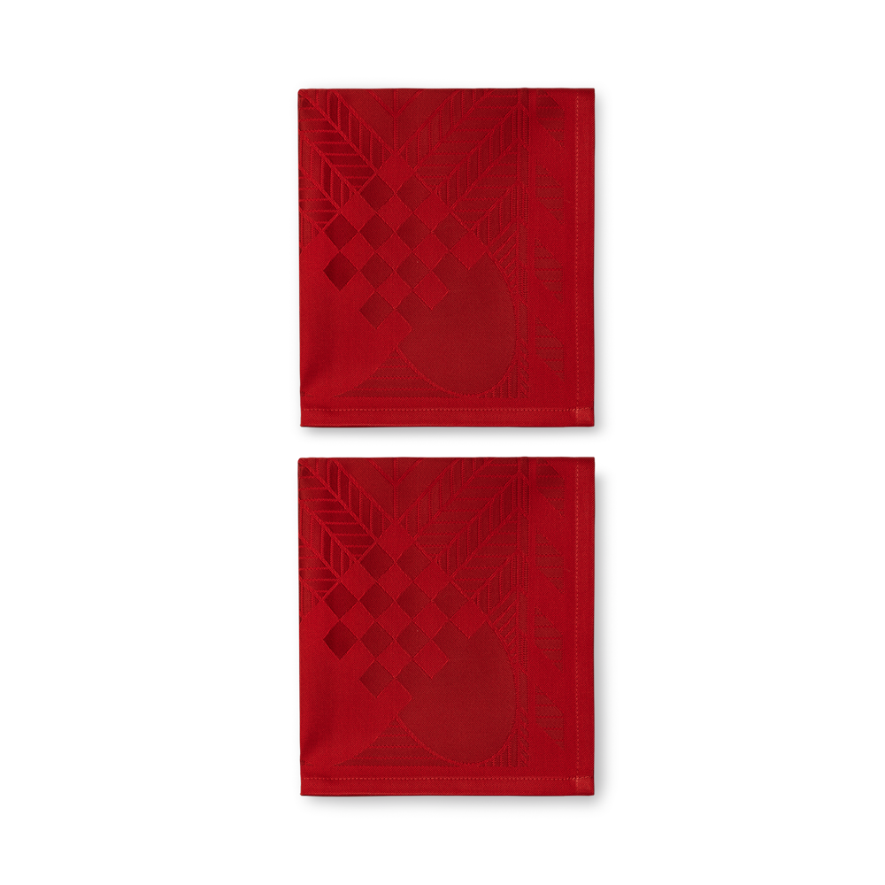 De donkerrode variant is geweven in toon‑op‑toon nuances van de iconische kerstkleur, wat de placemat een eenvoudig, klassiek en stijlvol uiterlijk geeft. Leg deze placemat op tafel en voel de kerstsfeer zich verspreiden. Bijpassende stoffen servetten maken het geheel compleet.