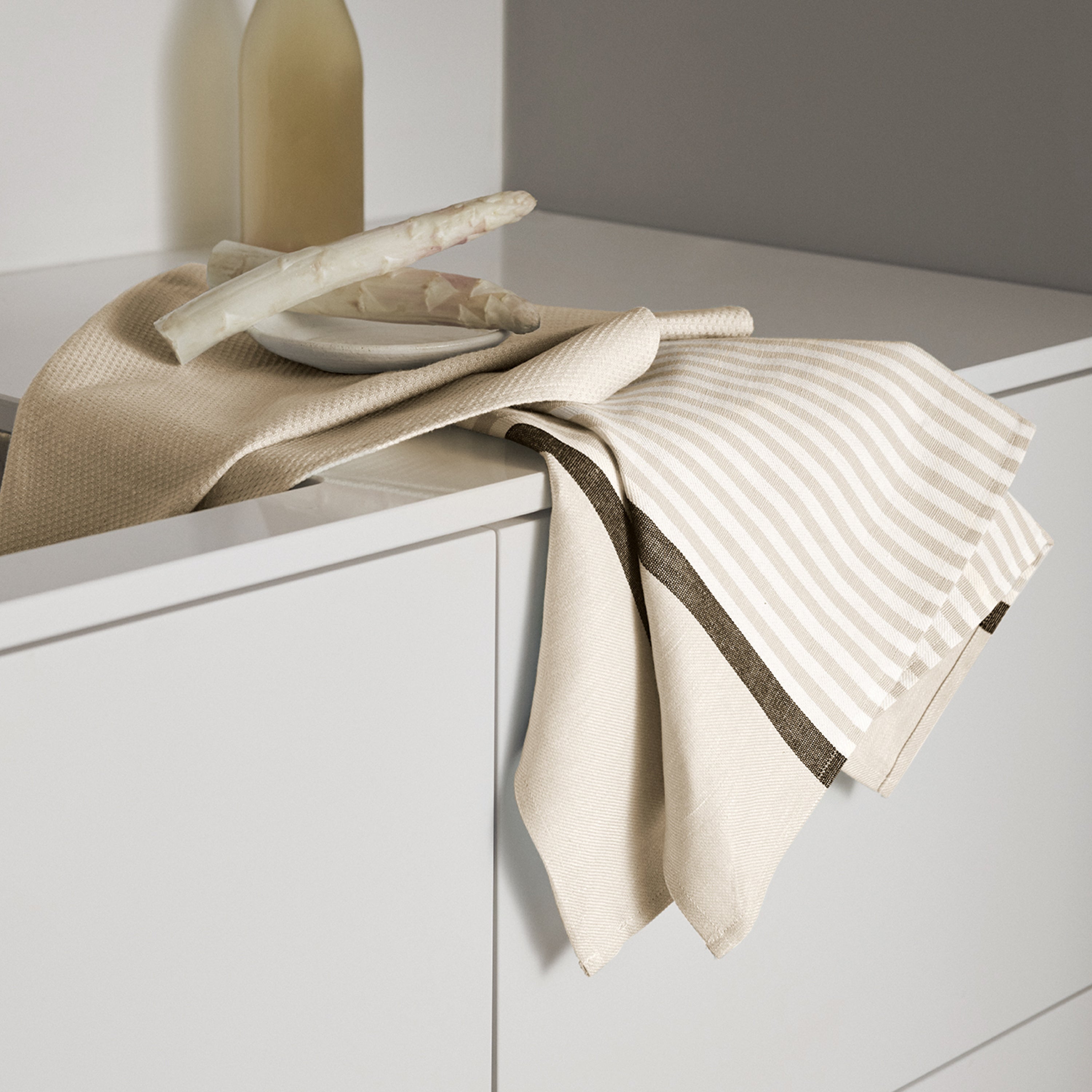 Abild is een klassieke theedoek met harmonieuze strepen als belangrijkste designelement. De theedoek is geweven in een sterke combinatie van linnen en katoen voor optimale droogeigenschappen.