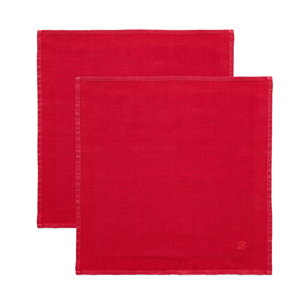 Plain linnen servetten met hun karakteristieke ingeweven rand en een geborduurd logo als elegant detail. In de kleur Deep Red passen de Plain servetten perfect bij de kersttafel.