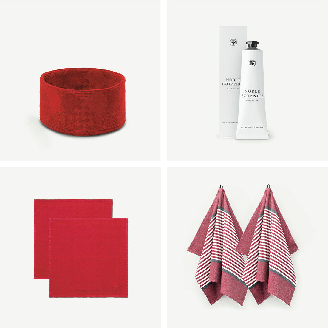 De Christmas broodmand met gevlochten hartjes en gestileerde dennentakken in de diepe rode kleur is het ultieme kersticoon. Het iconische ontwerp is gemaakt door textielkunstenaar Bodil Bødtker-Næss.