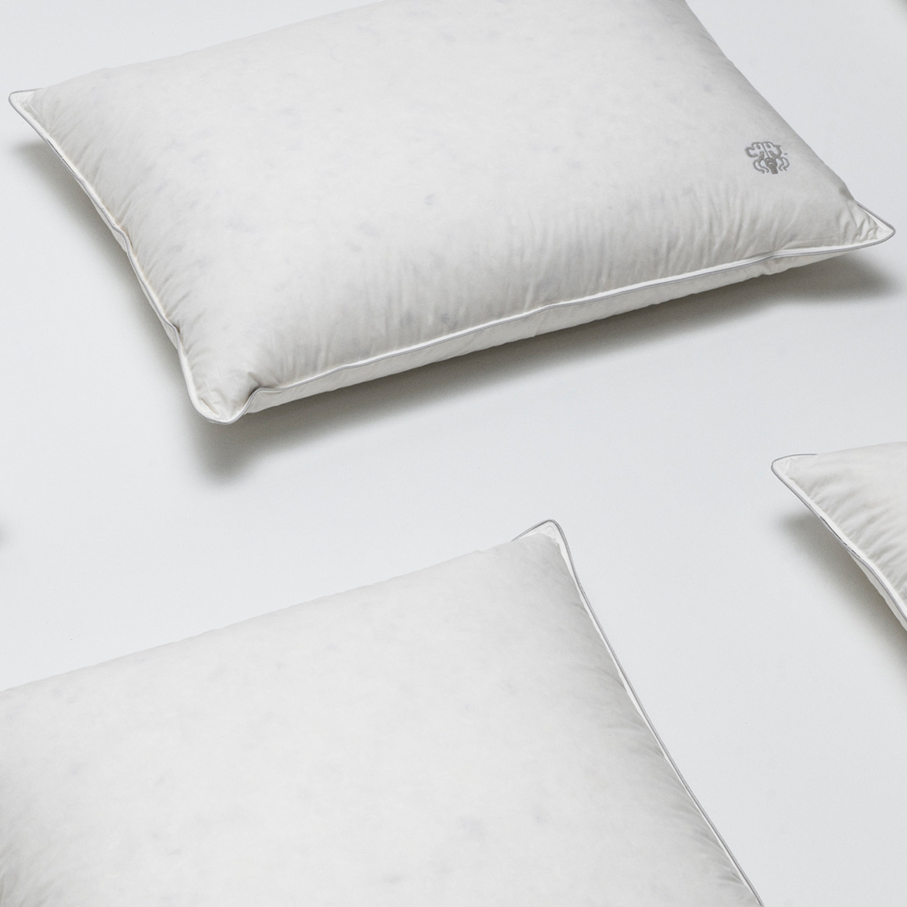 Het eendendonskussen is voorzien van het iconische logo van Georg Jensen Damask als een discreet borduursel - een symbool van kwaliteit en zorg.