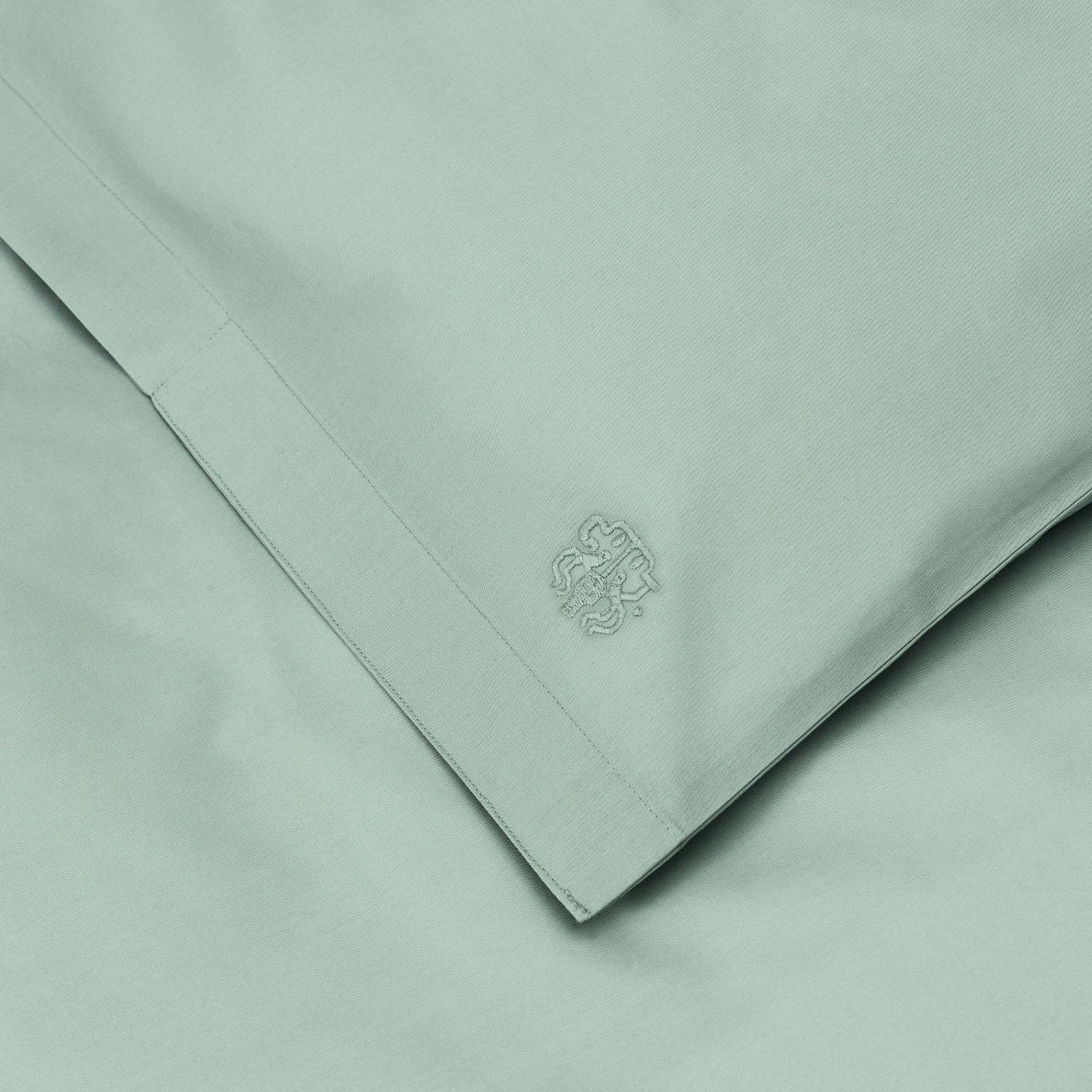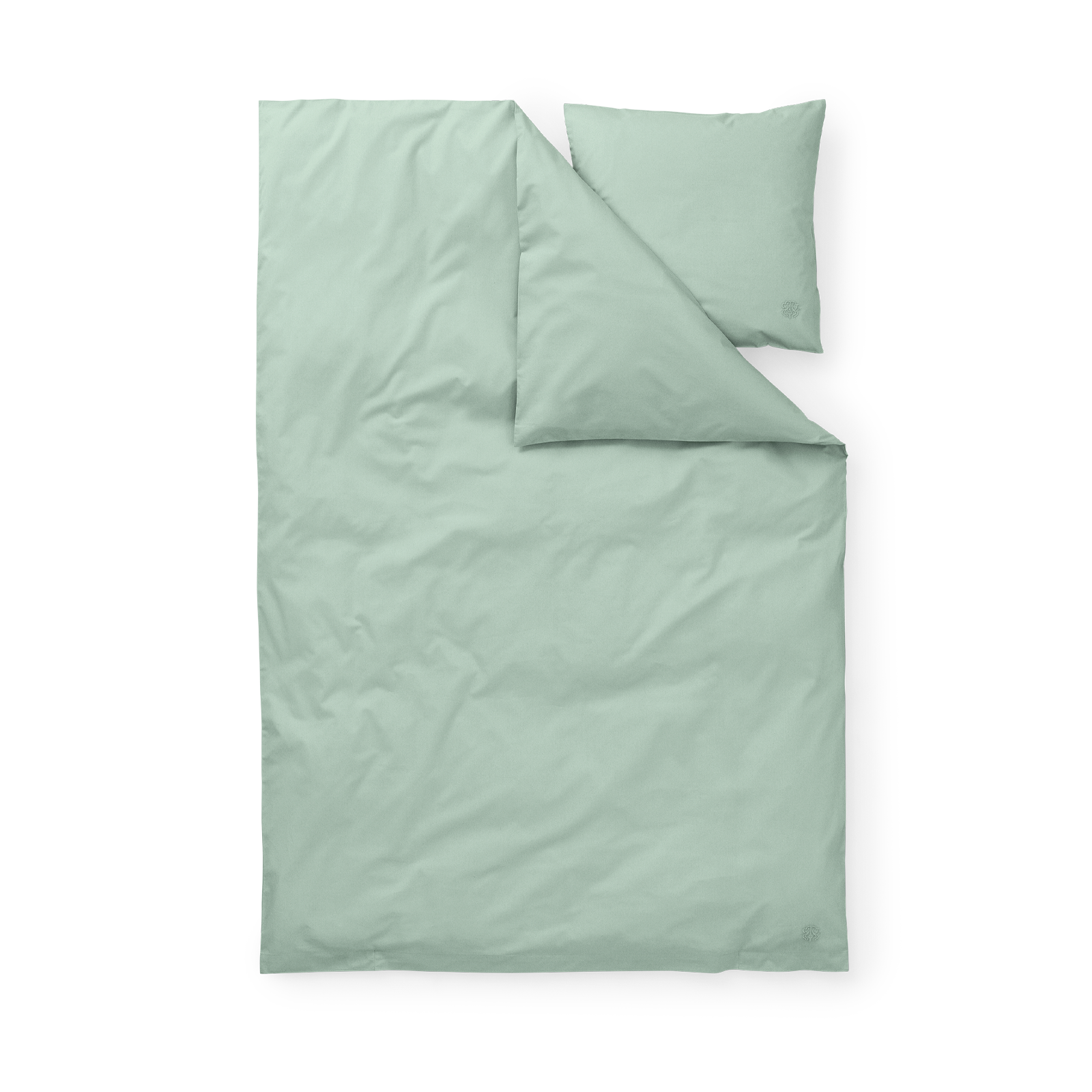 Het dekbedovertrek sluit met bandjes en de kussensloop heeft een envelopsluiting. De beddenset is voorzien van het iconische logo van Georg Jensen Damask als discreet borduursel. Sage Green is een groentint met subtiele blauwgrijze ondertonen.