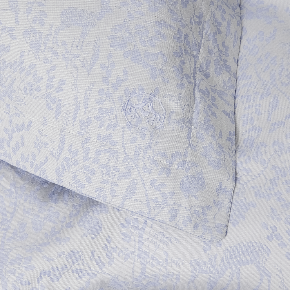 Het ontwerp van de Forest collectie is ontleend aan een 19e eeuws wandtapijt dat gevonden is in de historische archieven van Georg Jensen Damask. Het Forest beddengoed is geweven in een 100% katoenen jacquard met pas ontloken bomen, damherten en konijnen in de stof geweven. De gewatteerde deken is zacht voor de kleintjes om op te spelen. In de koffer passen zowel speelgoed als knuffels.