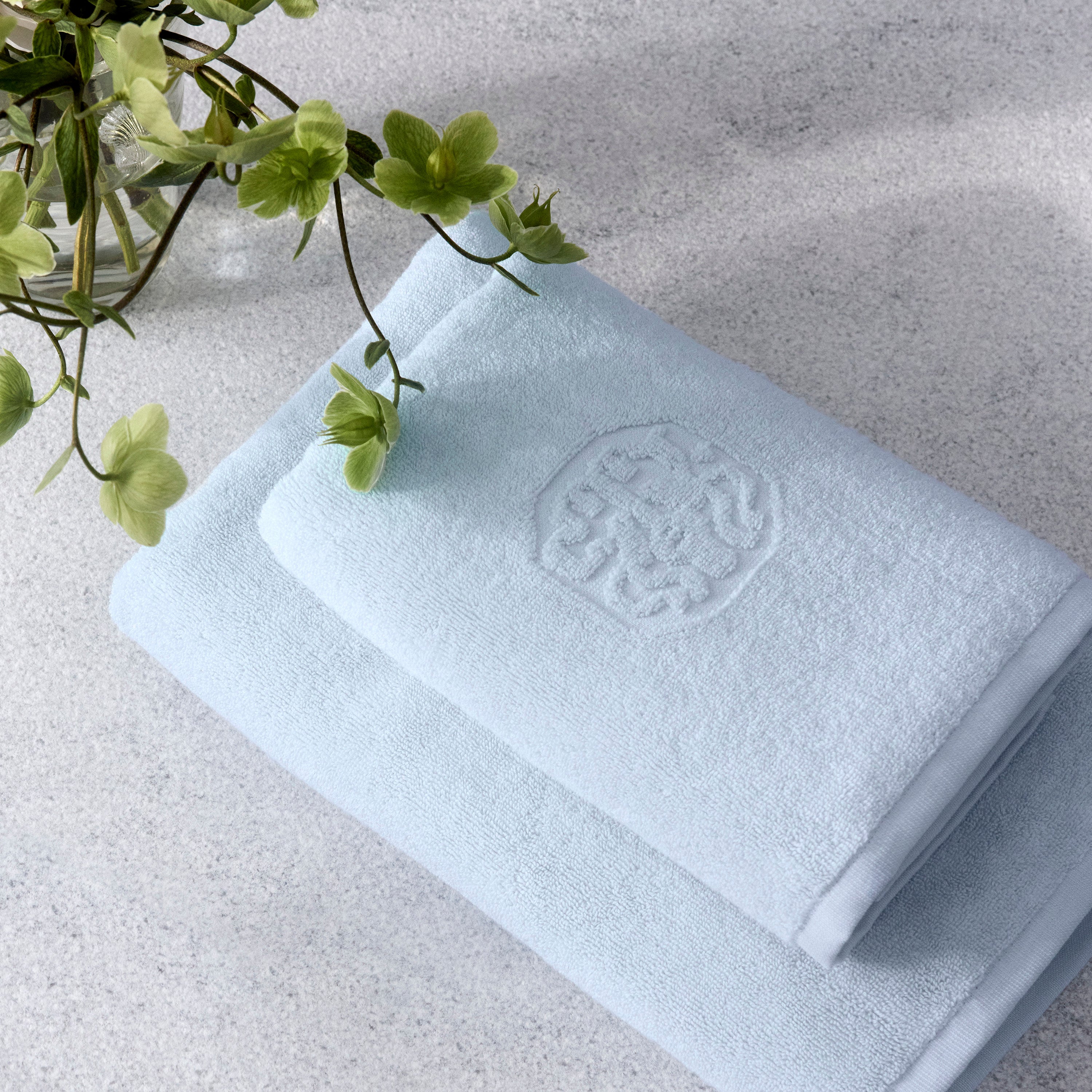 De Damask Terry badhanddoek heeft een eenvoudige uitstraling met het iconische logo van Georg Jensen Damask ingeweven als elegant detail. Minimal Blue is een zeer lichte versie van lichtblauw met een vleugje aqua.