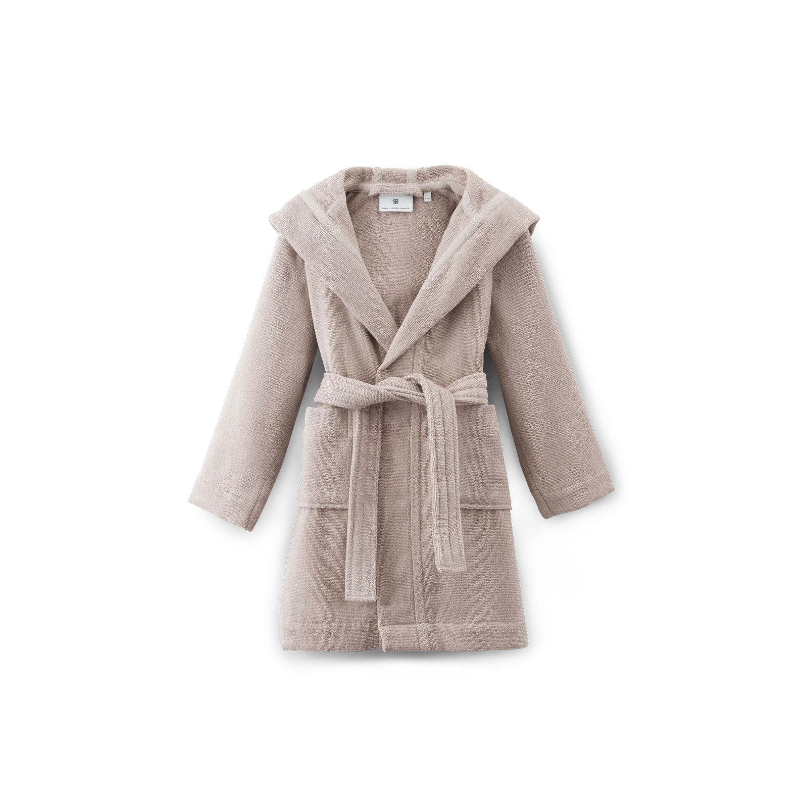 Zachte en warme frottébadjas voor kinderen. De Terry badjas heeft een klassiek design met capuchon, zakken, ceintuur in de taille en binnennaden met bies. Hij is geweven van 100% katoen met lussen van dubbelgetwijnde en gekamde garens, wat zorgt voor een mooie en glanzende afwerking.