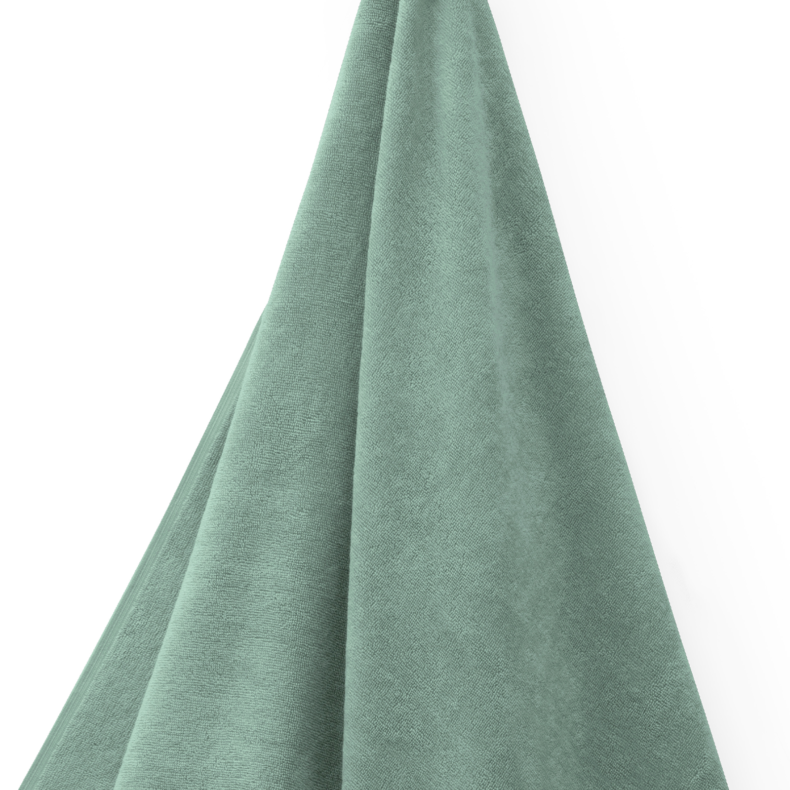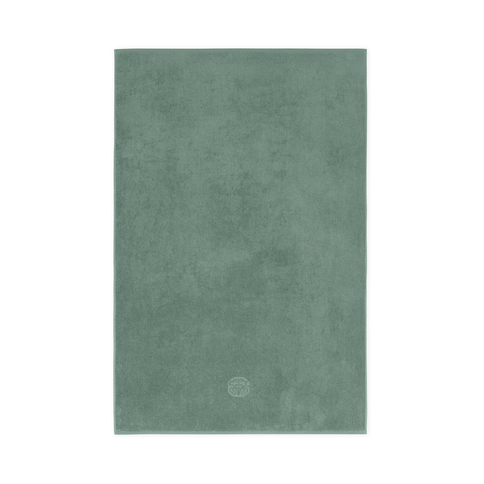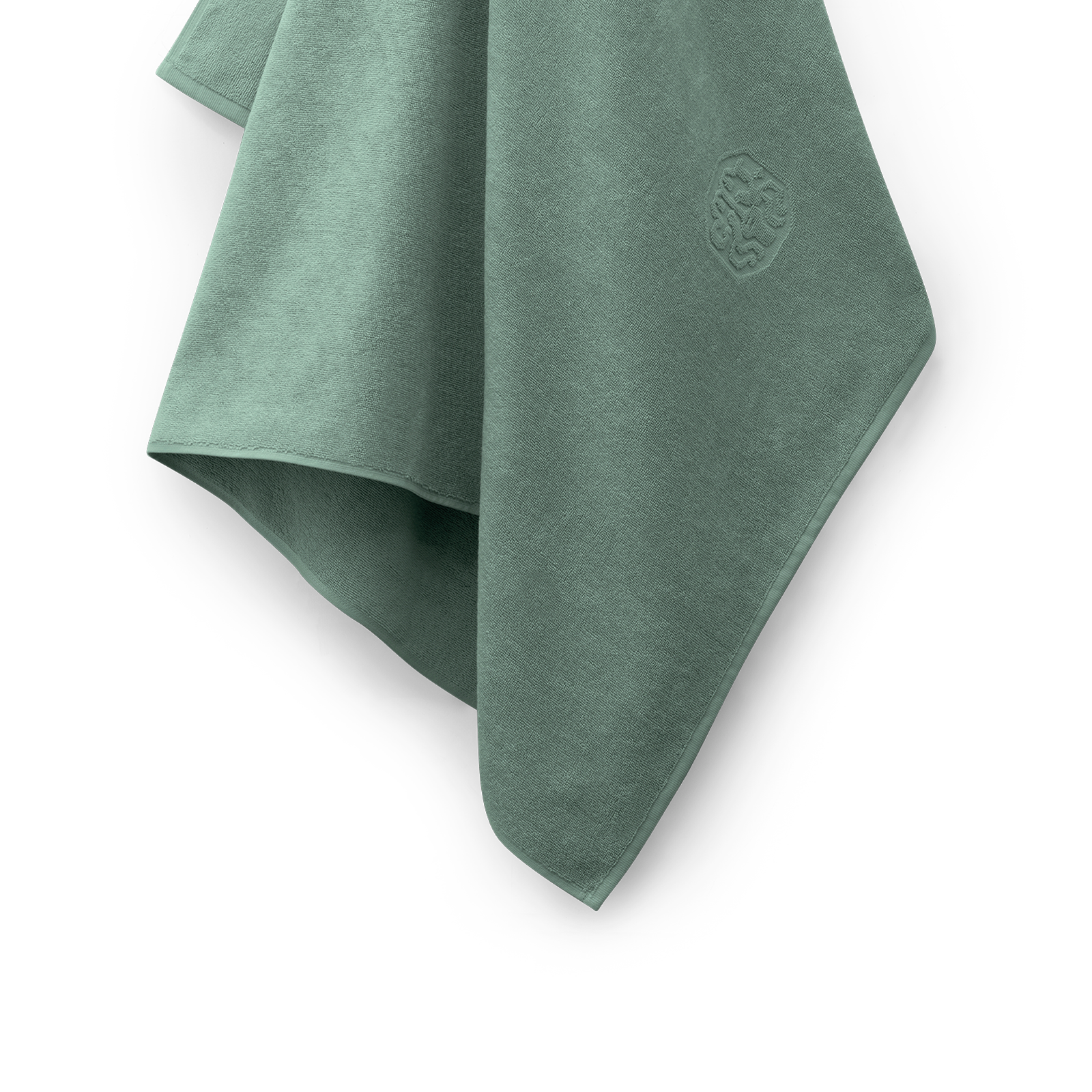 Groot en zacht Damask Terry badlaken in de kleur Sage Green – Sage Green is een koele groentint. Als elegant detail heeft het badlaken het iconische logo van Georg Jensen Damask ingeweven.