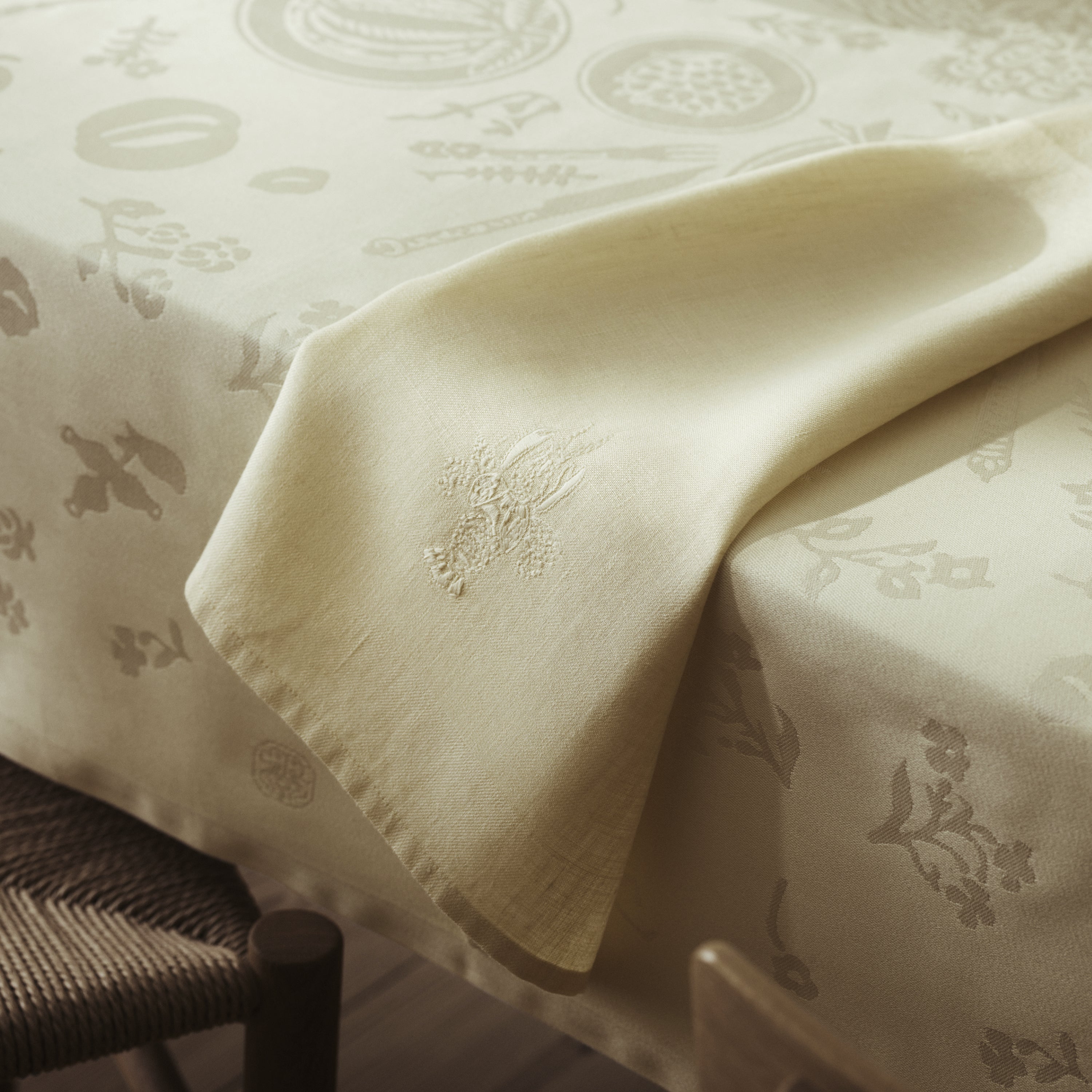 De Banquet serie is geïnspireerd op het prachtkleed van Christian IV. In de jaren 1620, toen de koning gasten uitnodigde voor een diner op kasteel Rosenborg, dekte hij de koninklijke tafel met een speciaal prachtkleed als centraal punt voor de feestelijke gelegenheid en een goede maaltijd. Het originele tafelkleed, waaraan de motieven zijn ontleend, is te vinden in het textielmagazijn van de Royal Collection. Naast servetten met geborduurde motieven in twee kleuren, omvat de Banquet serie damasten tafelkleed en theedoeken.