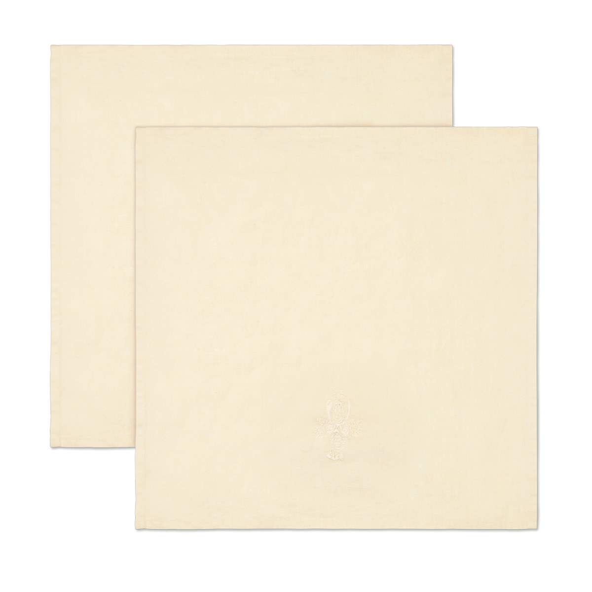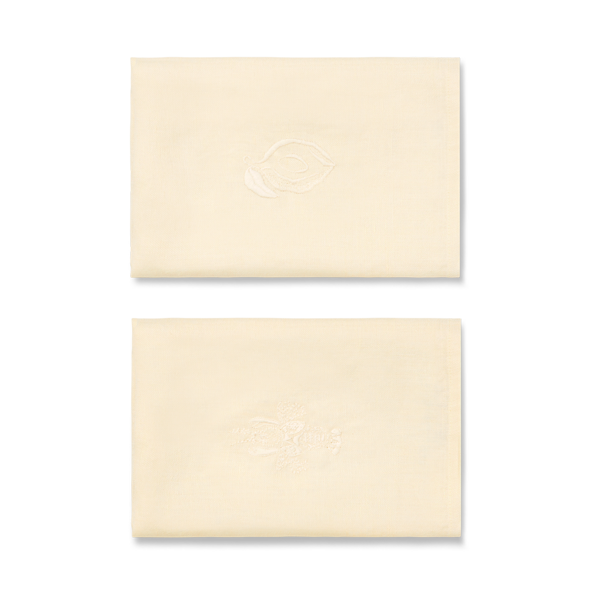 De Banquet stoffen servet is geweven van 100% linnen en heeft een delicaat geborduurd motief. De kreeft- en citroenmotieven zijn ontleend aan de Renaissance maaltijd en worden geleverd op aparte servetten in een set. De servetten zijn verkrijgbaar in twee kleuren en hebben een aangenaaid bandje zodat je het servet aan de hoek van de stoelleuning kunt hangen. Pale Yellow is een mooie, lichtgele tint.