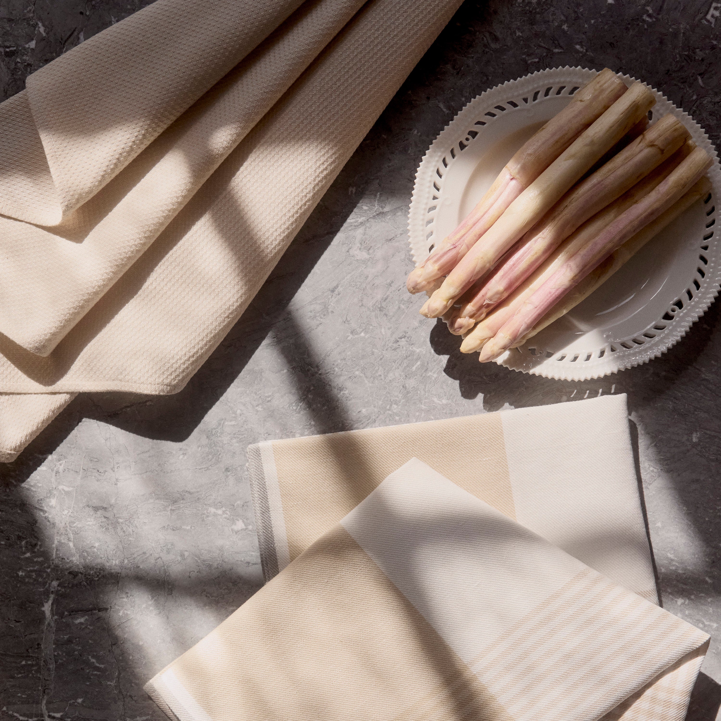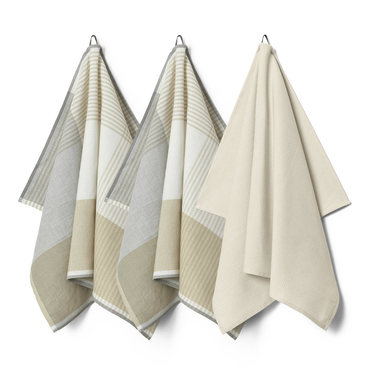 Keukenpakket met twee Becker 63 theedoeken en een 1959 keukendoek in de kleur Archive - een lichtbeige tint.